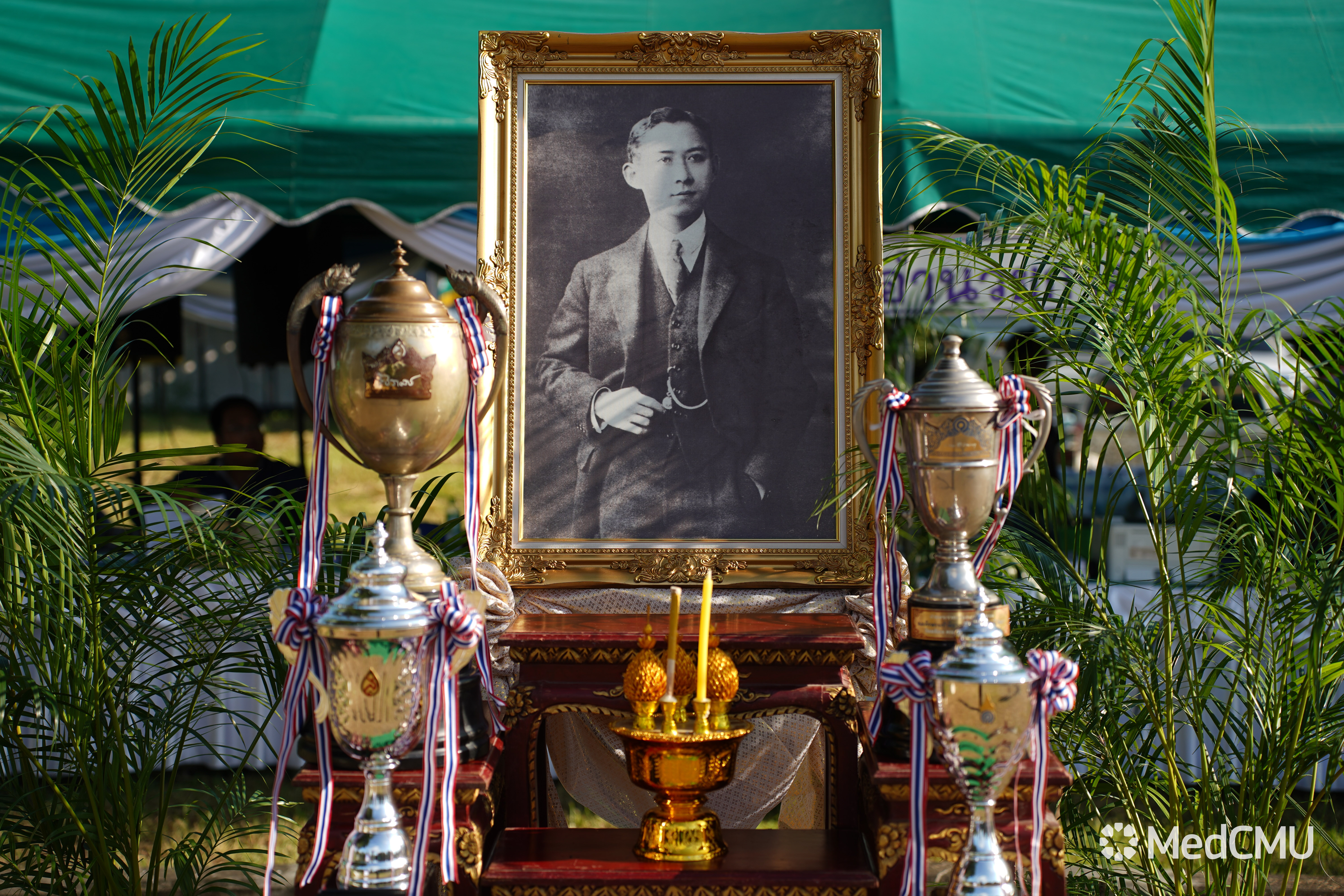 และคุณวีรชาติ ชูฤทธิ์ หัวหน้าฝ่ายการพยาบาล ปฏิบัติหน้าที่รองผู้อำนวยการโรงพยาบาลมหาราชนครเชียงใหม่ จุดเครื่องทองน้อยถวายความเคารพพระฉายาลักษณ์ สมเด็จพระมหิตลาธิเบศร อดุลยเดชวิกรม พระบรมราชชนก