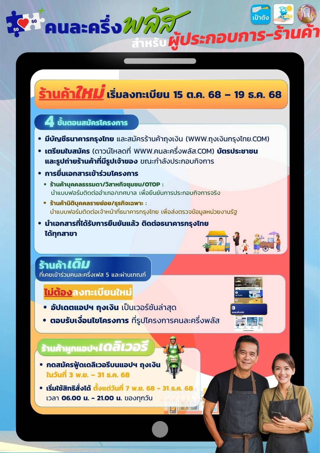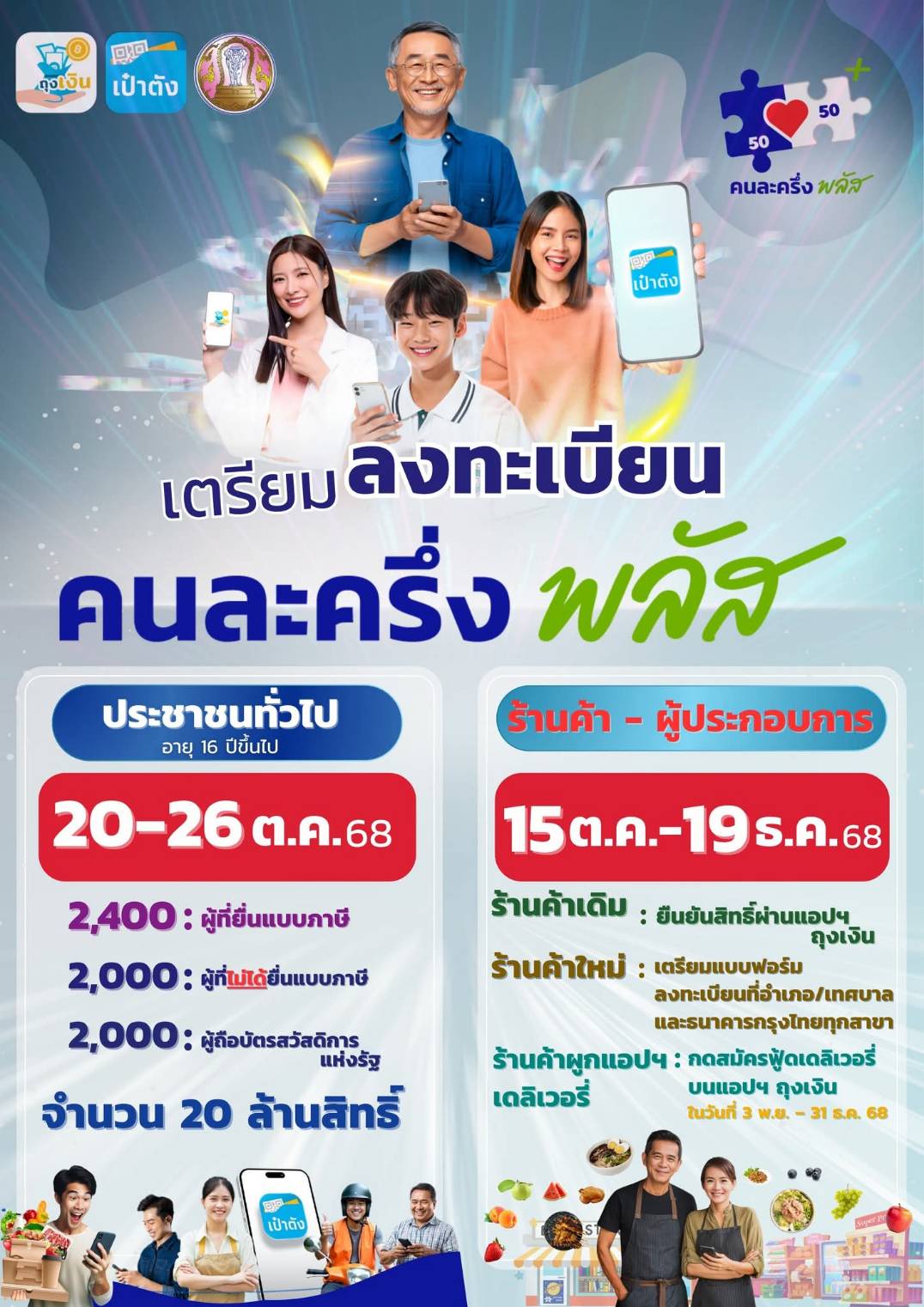 • 15 ต.ค. – 19 ธ.ค. 68: ร้านค้าใหม่ลงทะเบียนเข้าร่วมโครงการ