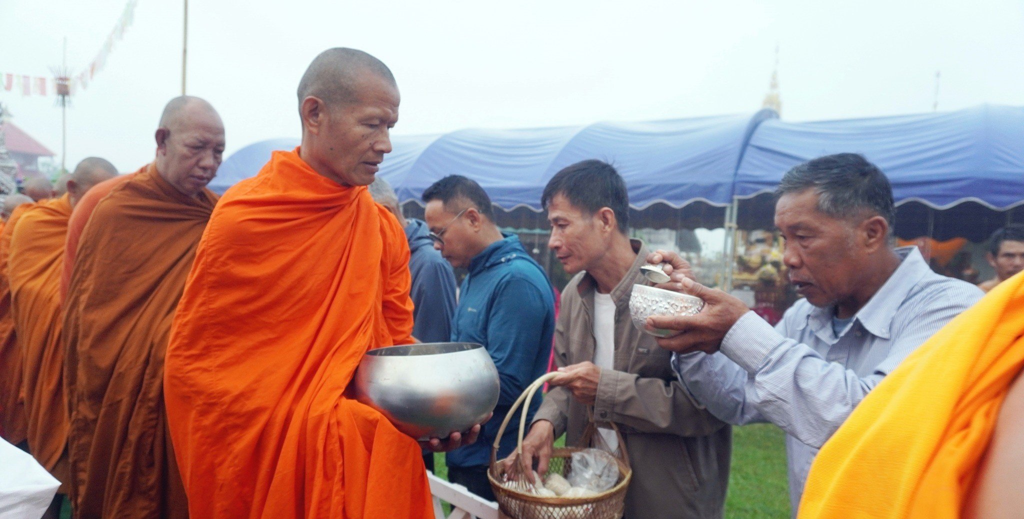 เวลา 06.00-07.00 น. ตักบาตรอาหารแห้ง รอบเจดีย์และจองแปดหลัง