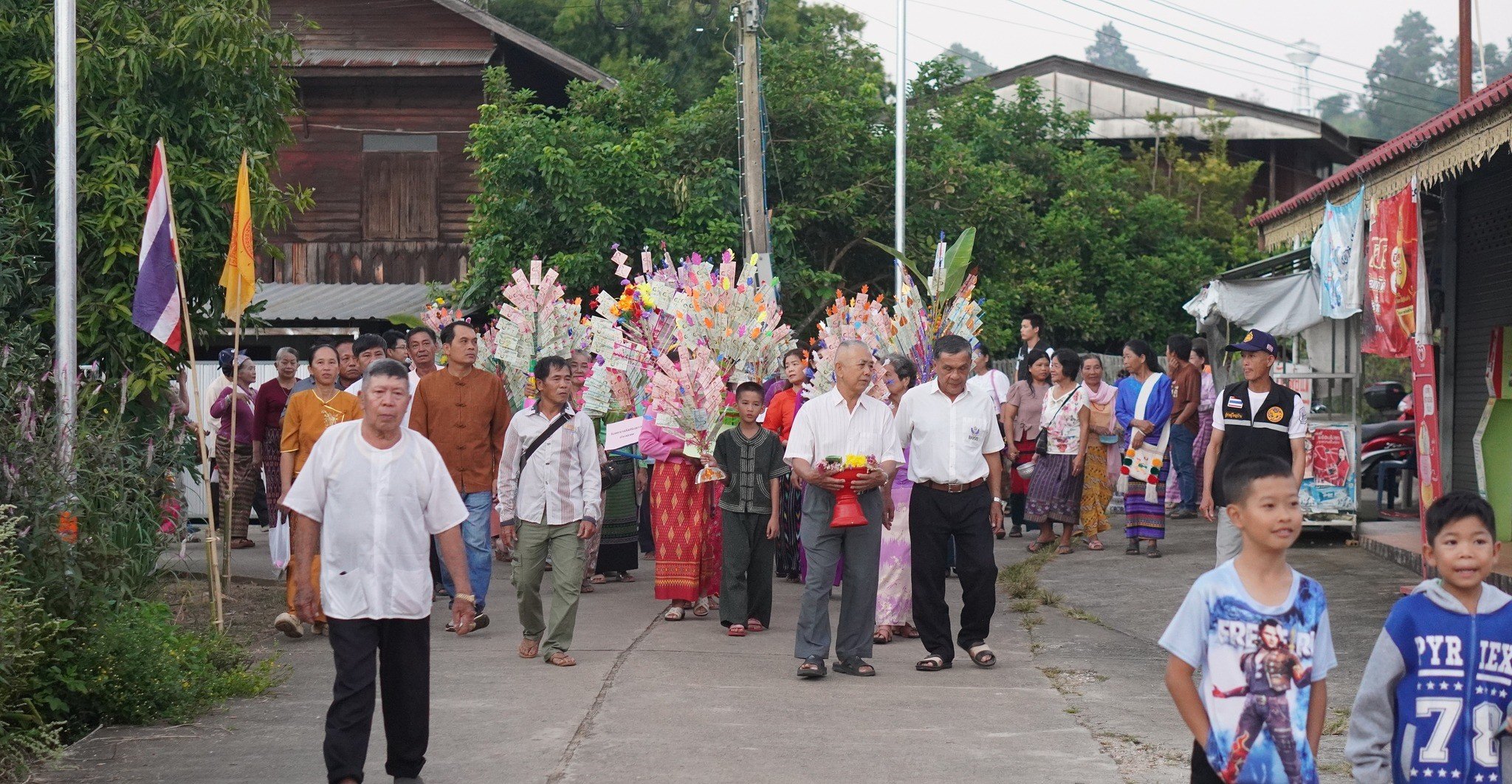 เวลา 17.00-20.00 น. ขบวนแห่ผ้าป่า มาตามถนนภายในหมู่บ้านไปยังวัดต่อแพ เพื่อทำการถวายผ้าป่าประจำปี