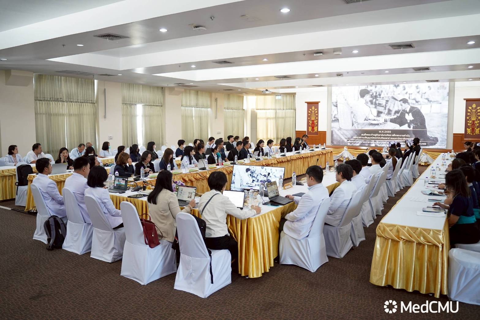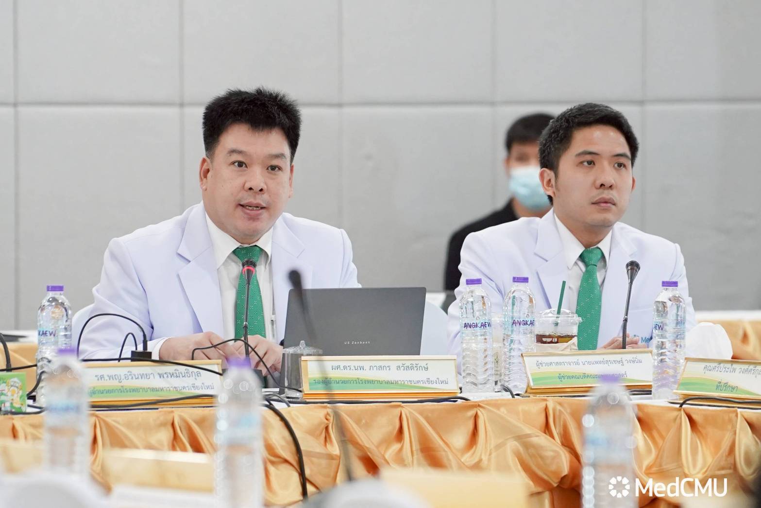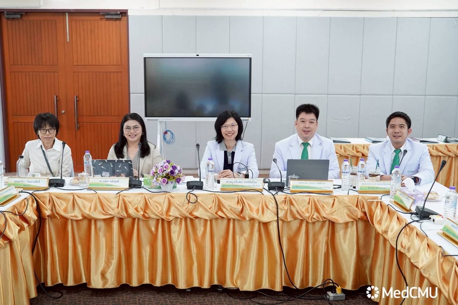 ผศ.นพ.เศรษฐพงศ์ บุญศรี รองคณบดีด้านพัฒนาคุณภาพองค์กร, ผศ.นพ.สุรเชษฐ์ วงษ์นิ่ม ผู้ช่วยคณบดีฯ และผู้ช่วยฝ่ายบริหารระบบคุณภาพในองค์กร รวมถึงหัวหน้าฝ่าย หัวหน้างาน คณะแพทยศาสตร์ มช.