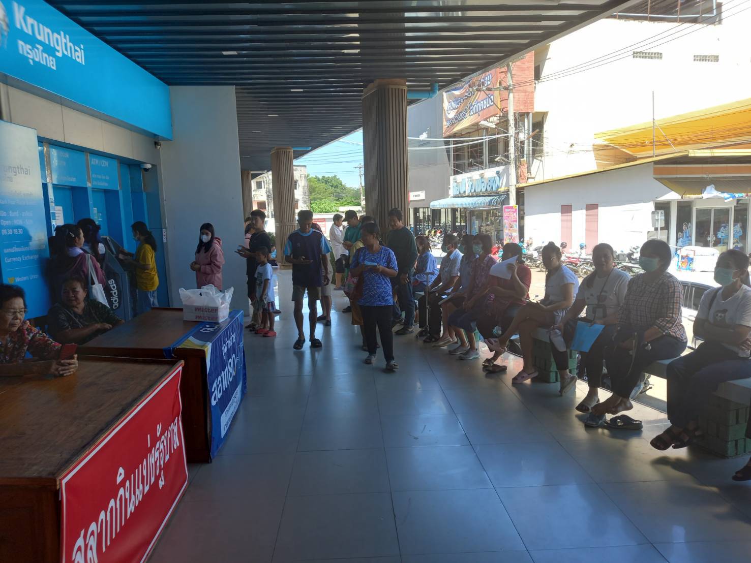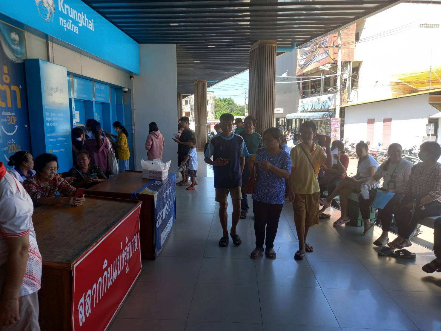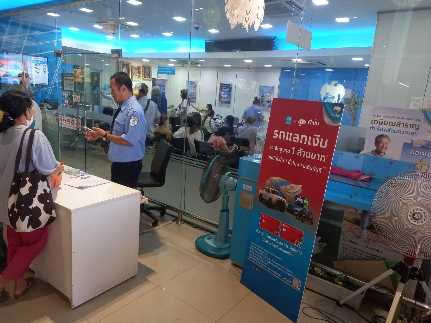 ที่ธนาคารกรุงไทยในตัวเมืองแพร่ ทั้ง 3แห่งได้มีชาวบ้านมาลงแอพพลิเคชั่นกระเป๋าตังค์จำนวนมากทั้ง 3แห่ง เพื่อนำไปสมัครโครงการคนละครึ่ง