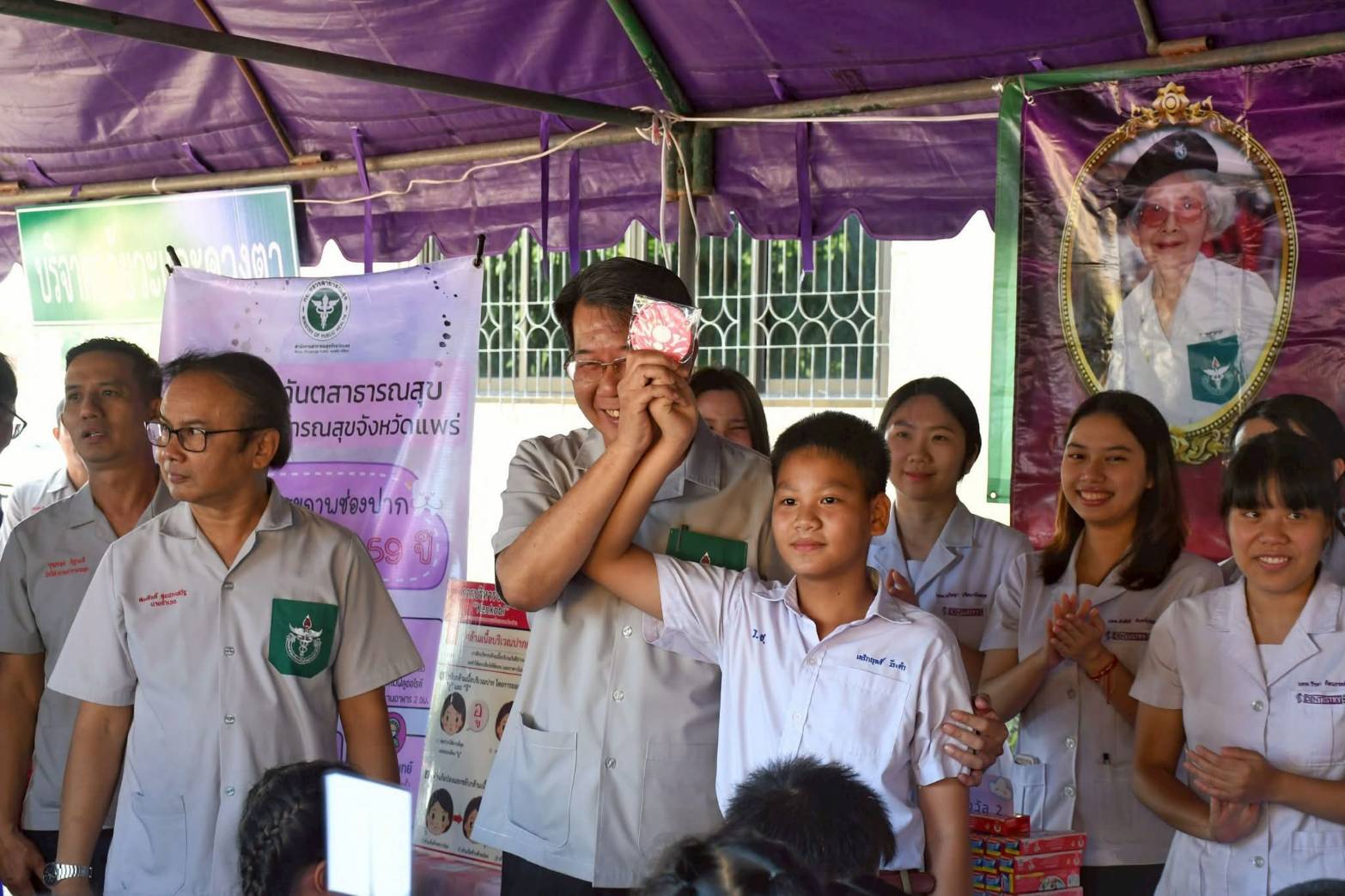 นายสมชัยเลิศ ประสิทธิพันธ์ ผู้ว่าราชการจังหวัดแพร่ นำหน่วยแพทย์ พอ.สว. ออกให้บริการประชาชน เพื่อถวายเป็นพระราชกุศลแด่สมเด็จพระศรีนครินทราบรมราชชนนี เนื่องในวันคล้ายวันพระราชสมภพ และวันทันตสาธารณสุขแห่งชาติ ซึ่งตรงกับวันที่ 21 ตุลาคมของทุกปี ภายในงานมีการมอบยาชุดพระราชทานแก่ผู้สูงอายุ มอบถุงยังชีพ ให้มีบริการตรวจรักษาโรคทั่วไป บริการทันตกรรม การแพทย์แผนไทย นวดเพื่อสุขภาพ การจ่ายยาสมุนไพร รวมถึงการให้ความรู้ด้านสุขภาพ อาทิ การตรวจหามะเร็งเต้านมด้วยตนเอง เพื่อให้ประชาชนได้รับบริการทางการแพทย์อย่างทั่วถึง ลดภาระการเดินทางและเข้าถึงระบบสาธารณสุขอย่างเท่าเทียม ณ เทศบาลตำบลแม่คำมี หมู่ที่ 3 ตำบลแม่คำมี อำเภอเมืองแพร่ จังหวัดแพร่