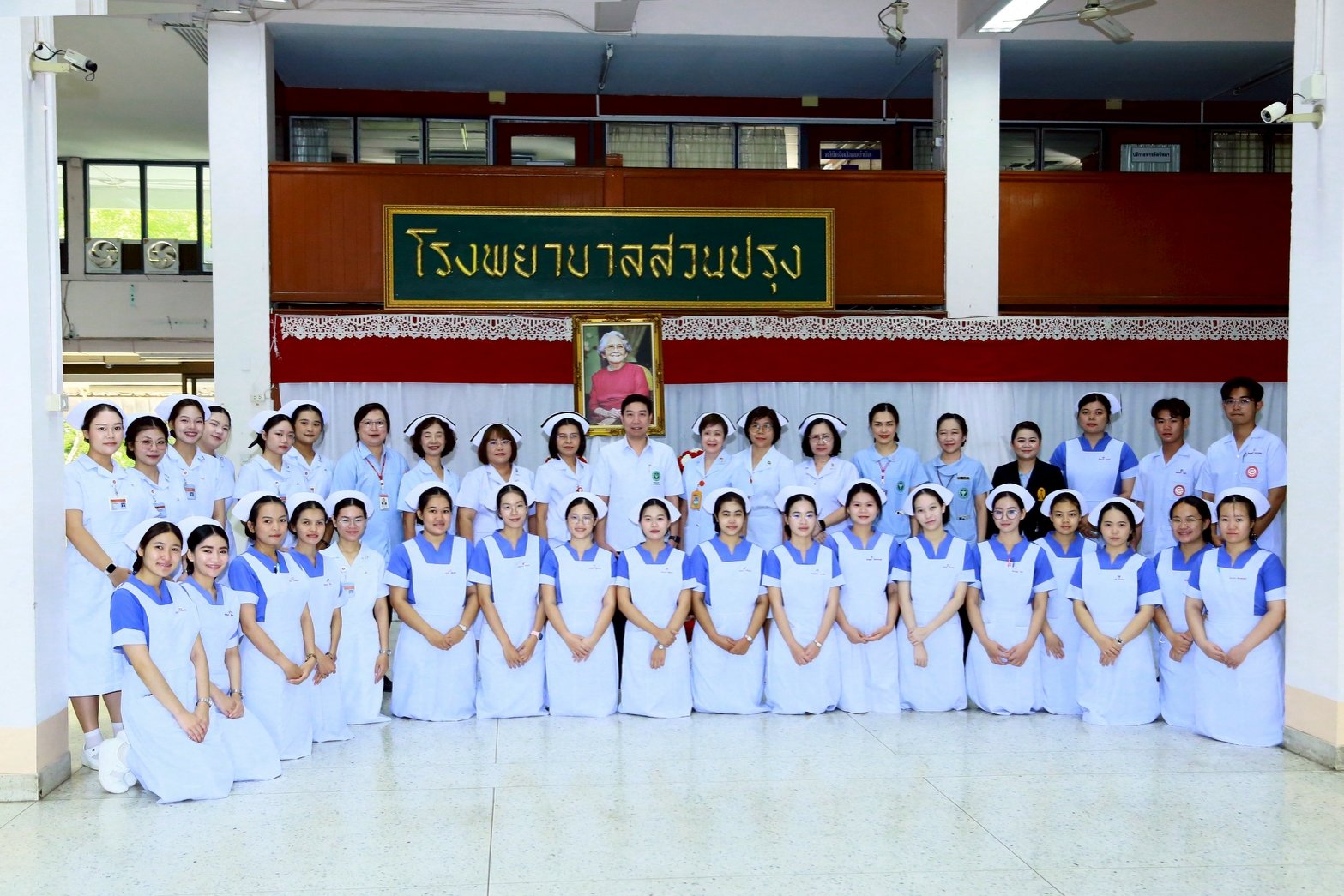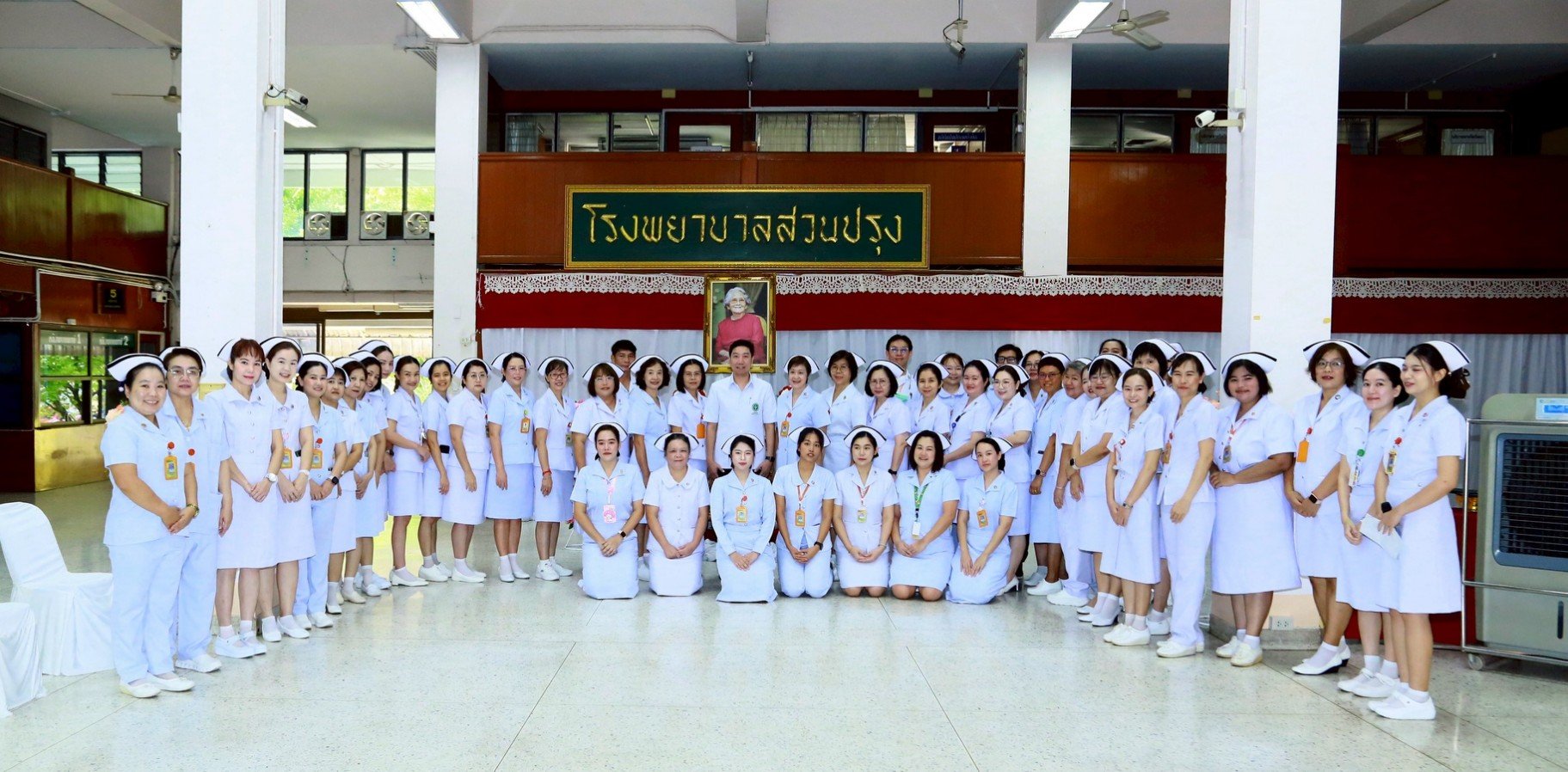 โรงพยาบาลสวนปรุง จัดพิธีวางพานพุ่มถวายราชสักการะสมเด็จพระศรีนครินทราบรมราชชนนี เนื่องในวันพยาบาลแห่งชาติ ประจำปี 2568 ภายใต้หัวข้อ “พยาบาลกับหัวใจแห่งการดูแล (Nursing: The Heart of Caring)”