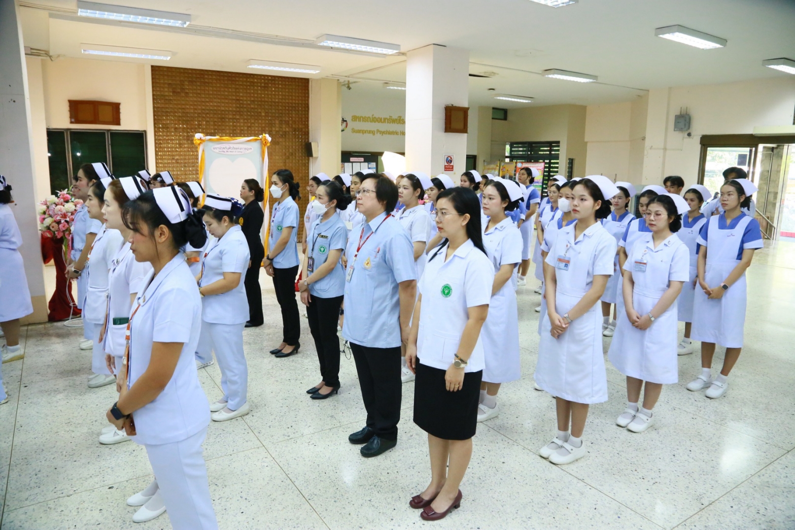 วันที่ 21 ตุลาคม 2568 นายแพทย์อาทิตย์ เล่าสุอังกูร ผู้อำนวยการโรงพยาบาลสวนปรุง เป็นประธานในพิธีวางพานพุ่มถวายราชสักการะสมเด็จพระศรีนครินทราบรมราชชนนี เนื่องในวันพยาบาลแห่งชาติ ประจำปี 2568 ภายใต้หัวข้อ “พยาบาลกับหัวใจแห่งการดูแล (Nursing: The Heart of Caring)” โดยมี นางสาวนวยนาฏ สมเพชร รองผู้อำนวยการด้านการพยาบาล กล่าวรายงาน พร้อมด้วย คณะผู้บริหารโรงพยาบาล ทีมองค์กรพยาบาล คณาจารย์และนักศึกษาพยาบาล เข้าร่วมกิจกรรมและเขียนข้อความปณิธานแห่งการพยาบาล “หัวใจแห่งการดูแล” ณ ชั้น 1 อาคารจิตสันติ โรงพยาบาลสวนปรุง