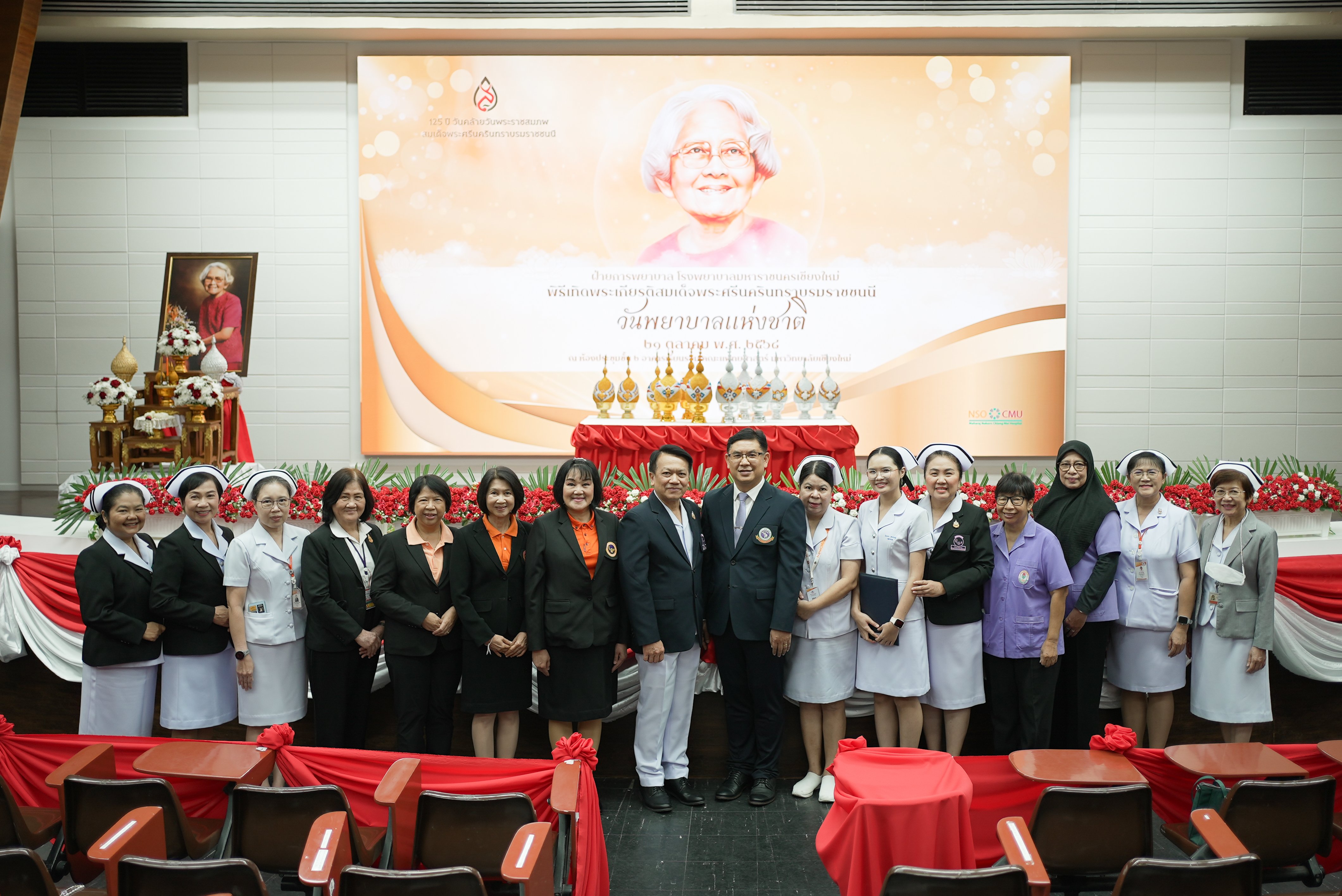คณะพยาบาลศาสตร์ มหาวิทยาลัยเชียงใหม่ นำโดย ผศ.ดร.อนนท์ วิสุทธิ์ธนานนท์ ผู้ช่วยคณบดี พร้อมด้วย ผศ.ดร.ชุติมา มีชำนาญ ผู้ช่วยคณบดี คณาจารย์ และนักศึกษา ร่วมพิธีเทิดพระเกียรติสมเด็จพระศรีนครินทราราชชนนี เนื่องในวันพยาบาลแห่งชาติ ประจำปี 2568 (125 ปี แห่งการพระราชสมภพ) จัดโดยฝ่ายการพยาบาล โรงพยาบาลมหาราชนครเชียงใหม่ เมื่อวันอังคารที่ 21 ตุลาคม 2568