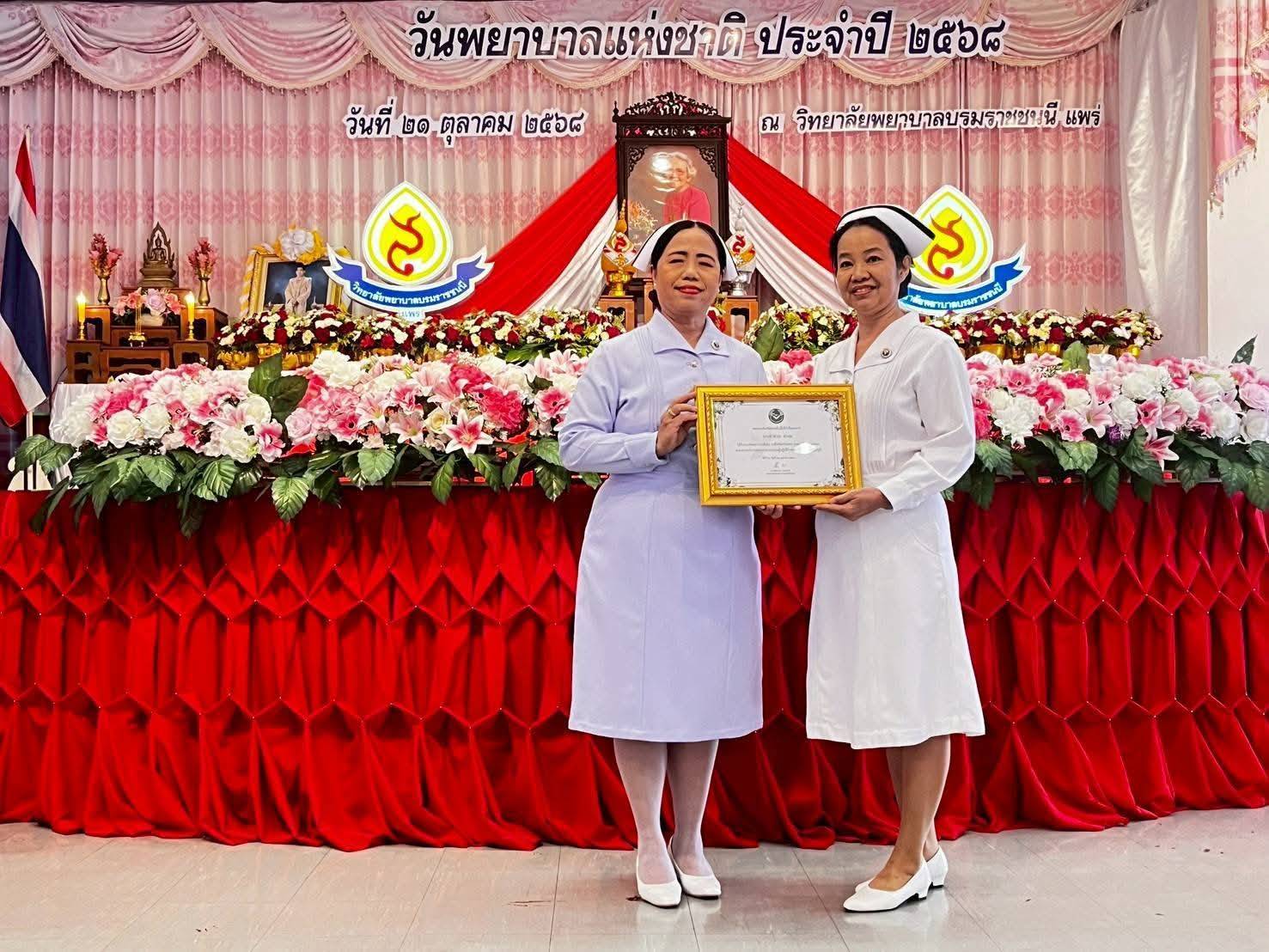 เนื่องในวันพยาบาลแห่งชาติ ประจำปี 2568 “Longevity and quality of life in nursing” ณ ห้องประชุมอำนวยการชั้น 3 วิทยาลัยพยาบาลบรมราชชนนีแพร่