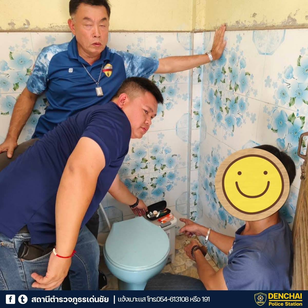 ของกลางยาเสพติดให้โทษประเภท 1 (ยาบ้า) จำนวนรวม 39 เม็ด ซุกซ่อนภายในห้องน้ำ