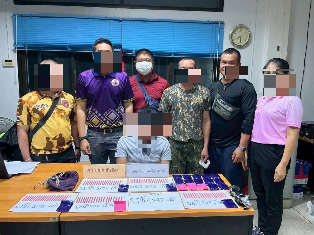 สันติสุข เดินหน้ากวาดล้างยาเสพติด! “No Dungs No Dealers” ปิดล้อมตรวจค้นรวบ 4 ราย ยึดยาบ้าเกือบ 4,300 เม็ด