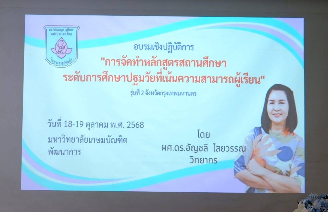 จัดโดยสมาคมอนุบาลศึกษาแห่งประเทศไทย เพื่อพัฒนาความรู้ความเข้าใจในการจัดทำหลักสูตรสถานศึกษาตามร่างหลักสูตรศึกษาปฐมวัย พ.ศ. 2568 ที่เน้นความสามารถผู้เรียน และนำมาพัฒนาคุณภาพการจัดการเรียนการสอนของโรงเรียนให้มีประสิทธิภาพยิ่งขึ้น