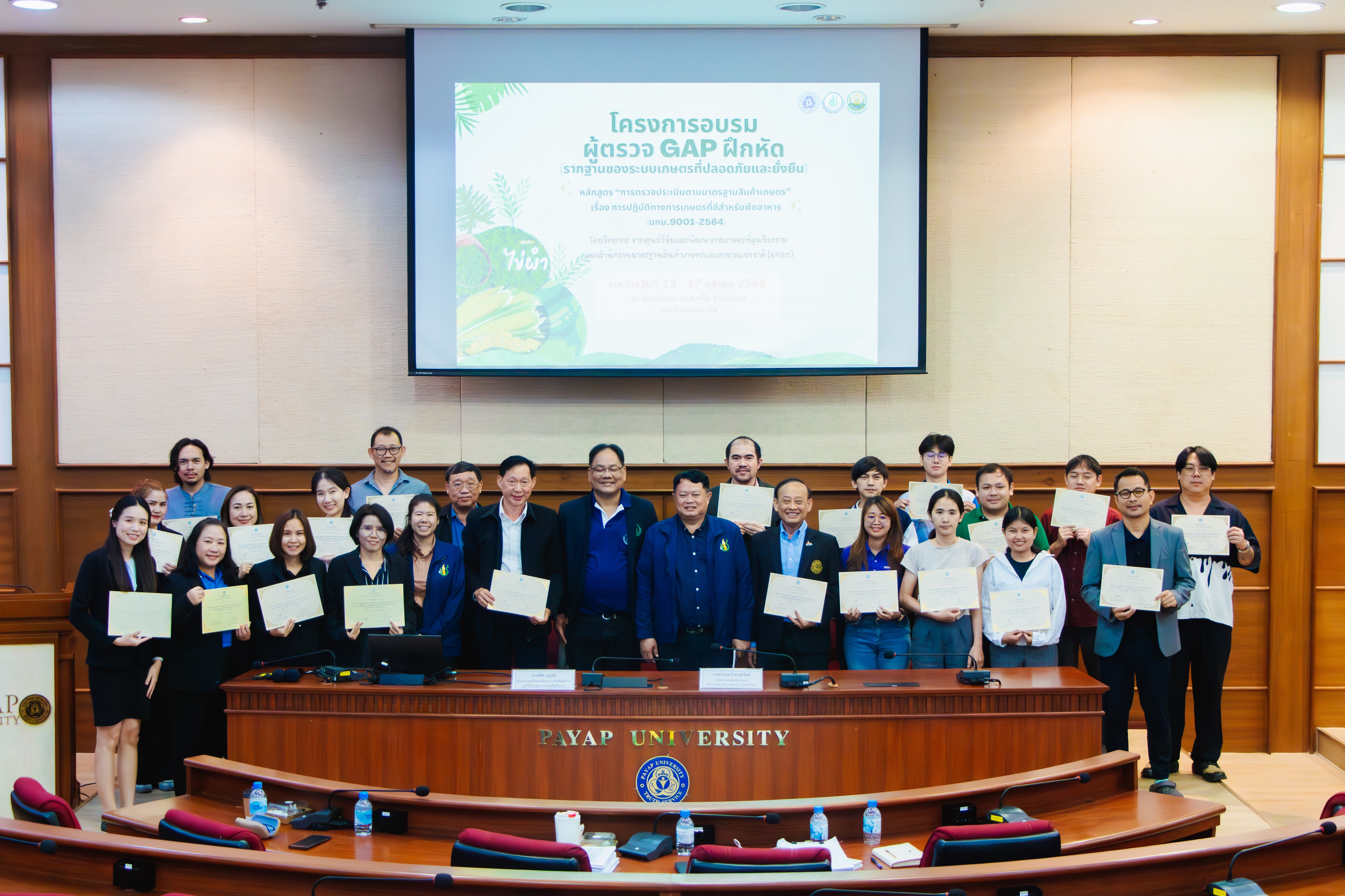 มหาวิทยาลัยพายัพ โดยสำนักบริการวิชาการ ได้ดำเนินการจัดอบรมผู้ตรวจ GAP ฝึกหัด (รากฐานของระบบเกษตรที่ปลอดภัยและยั่งยืน) หลักสูตร “การตรวจประเมินตามมาตรฐานสินค้าเกษตร” เรื่อง การปฏิบัติทางการเกษตรที่ดีสำหรับพืชอาหาร (มกษ.9001-2564) เสร็จสิ้นลงด้วยความเรียบร้อย และประสบผลสำเร็จอย่างสูง ระหว่างวันที่ 13 – 17 ตุลาคม 2568 ณ ห้องประชุม ดร.สิงห์โต จ่างตระกูล อาคารศูนย์ทรัพยากรการเรียนรู้สิรินธร มหาวิทยาลัยพายัพ เขตแม่คาว