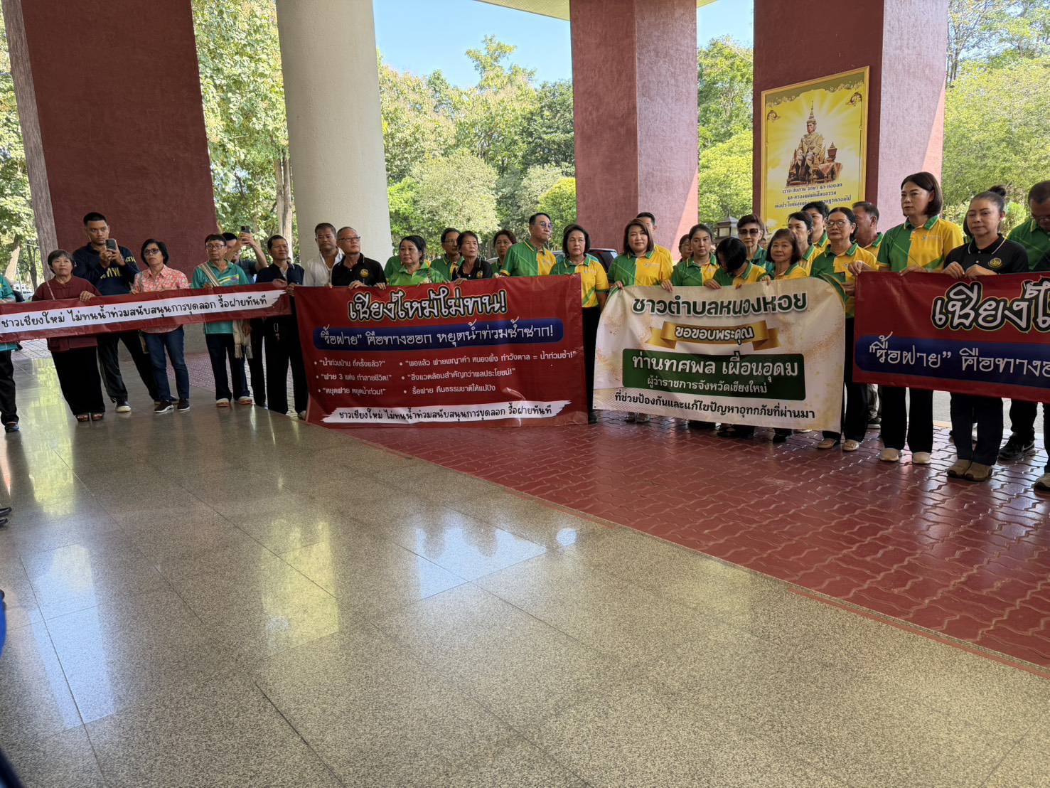 วันที่ 22 ต.ค. 68 ที่ด้านหน้าศาลากลางจังหวัดเชียงใหม่ ได้มีกลุ่มประชาชนจากในพื้นที่ตำบลฟ้าฮ่าม ตำบลหนองผึ้ง ตำบลท่าวังตาล และภาคเอกชน ได้รวมตัวกันเพื่อยืนหนังสือให้กับ นายทศพล เผื่อนอุดม ผู้ว่าราชการจังหวัดเชียงใหม่ เพื่อขอสนับสนุนในการปรับปรุงฝาย 3 แห่งในลำน้ำปิง ปรับปรุงท้องน้ำ เพื่อให้อัตราการไหลของแม่น้ำปิงได้ไหลผ่านสะดวกมากยิ่งขึ้น ป้องกันน้ำท่วมในเขตพื้นที่เศรษฐกิจตัวเมืองเชียงใหม่ และพื้นที่ด้านท้ายของลำน้ำปิง โดยมี นายเกื้อกูล มานะสัมพันธ์สกุล ผู้อำนวยการโครงการชลประทานเชียงใหม่ กรมเจ้าท่า หน่วยบัญชาการทหารพัฒนา สำนักงานป้องกันและบรรเทาสาธารณภัยจังหวัดเชียงใหม่ และหน่วยงานที่เกี่ยวข้องเข้าร่วมรับหนังสือจากตัวแทนกลุ่มชาวบ้าน