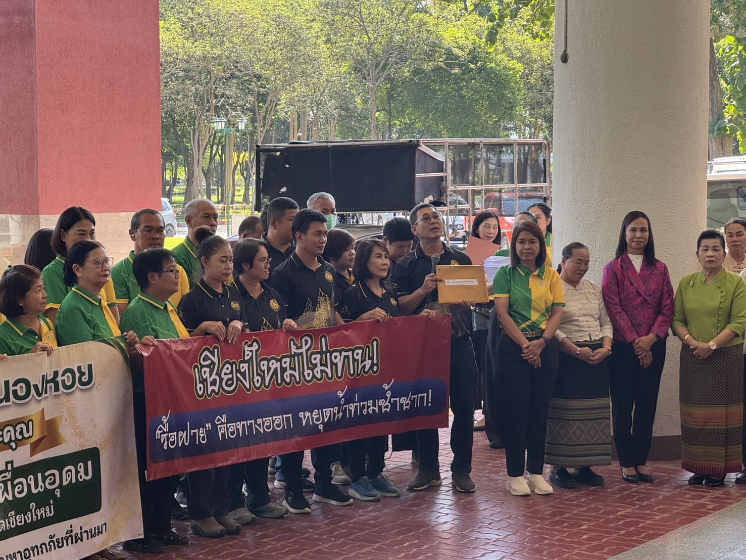 ผู้แทนชาวบ้านในตำบลหนองหอย รวมตัวยื่นหนังสือสนับสนุนการรื้อฝายในลำน้ำปิง เพื่อเพิ่มประสิทธิภาพการป้องกันน้ำท่วมในเขตเมืองเชียงใหม่