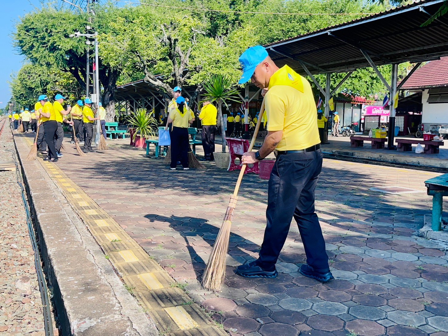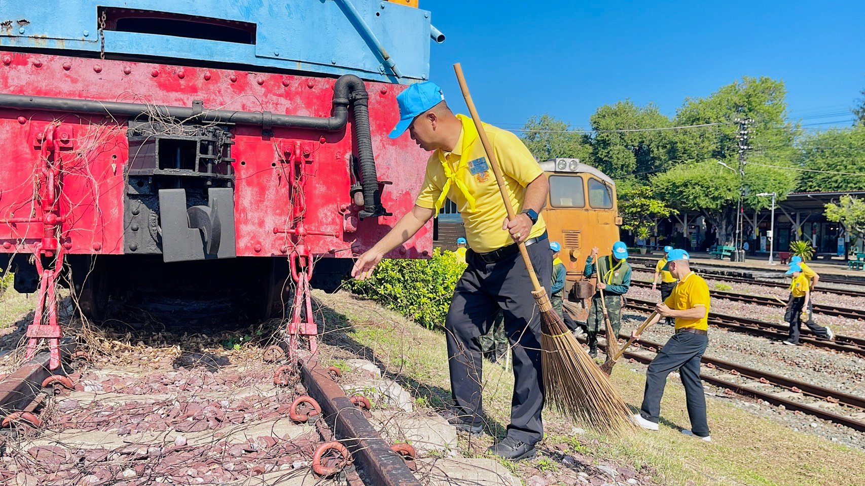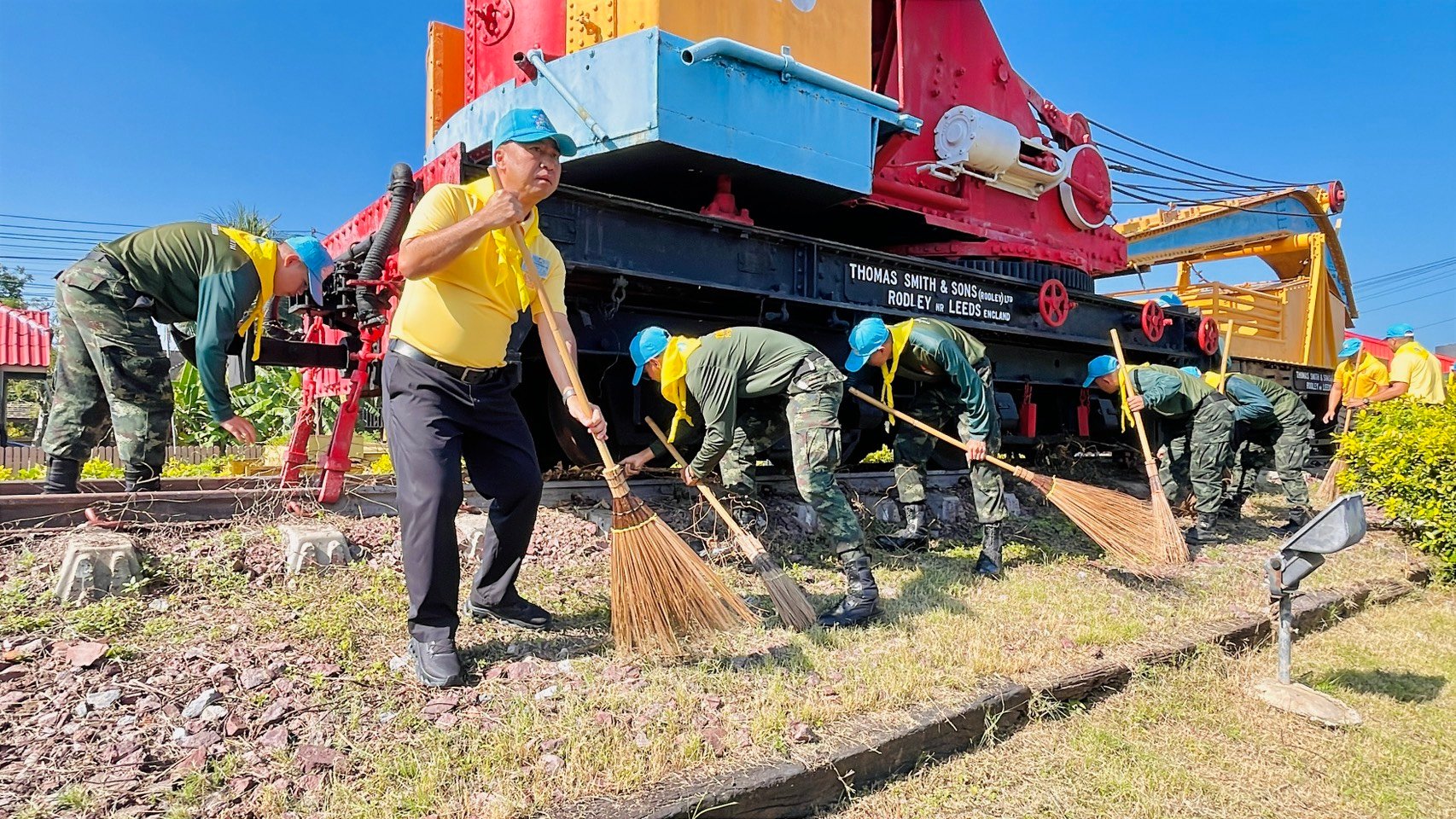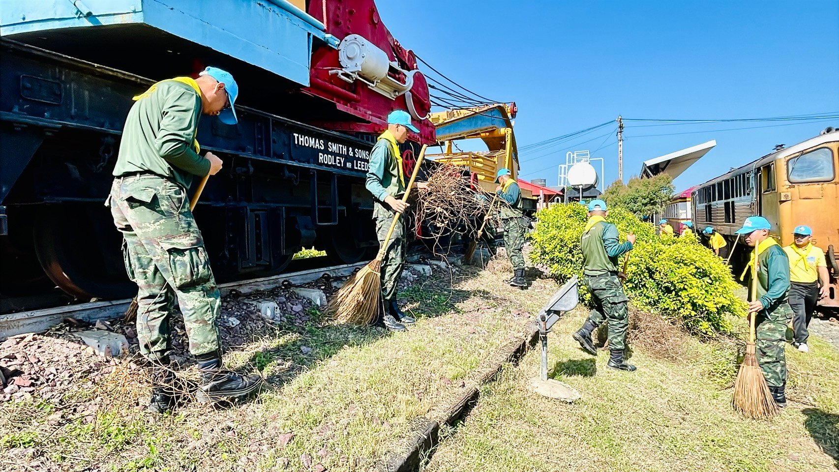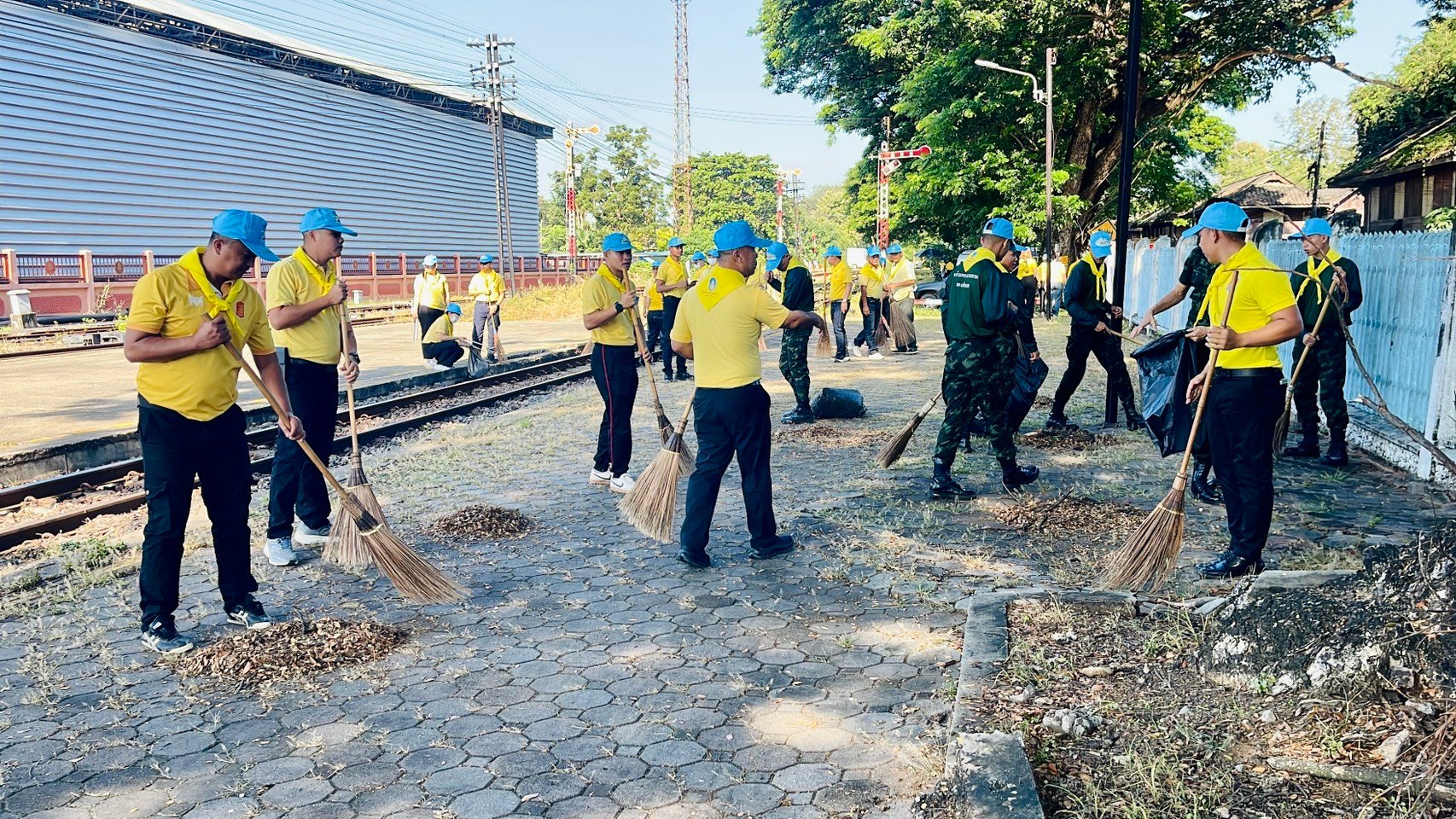 จิตอาสา มทบ.32 ทำดีด้วยหัวใจ พัฒนาบริเวณสถานีรถไฟนครลำปาง รำลึกรัชกาลที่ 5 ผู้ทรงริเริ่มก่อตั้งกิจการรถไฟในประเทศไทย