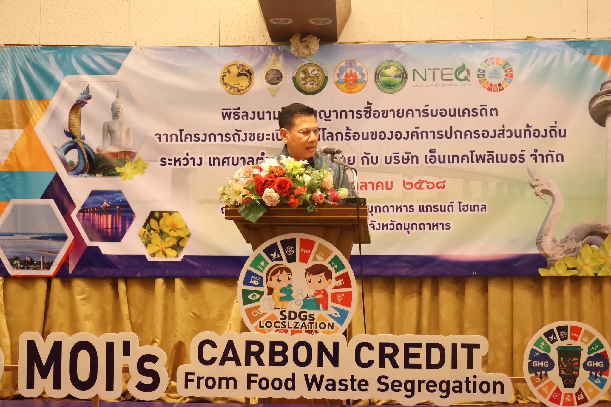 ผู้ว่าฯมุกดาหาร ประธานพิธีลงนามในสัญญาการซื้อขายคาร์บอนเครดิตจากโครงการถังขยะเปียกลดโลกร้อนขององค์กรปกครองส่วนท้องถิ่น