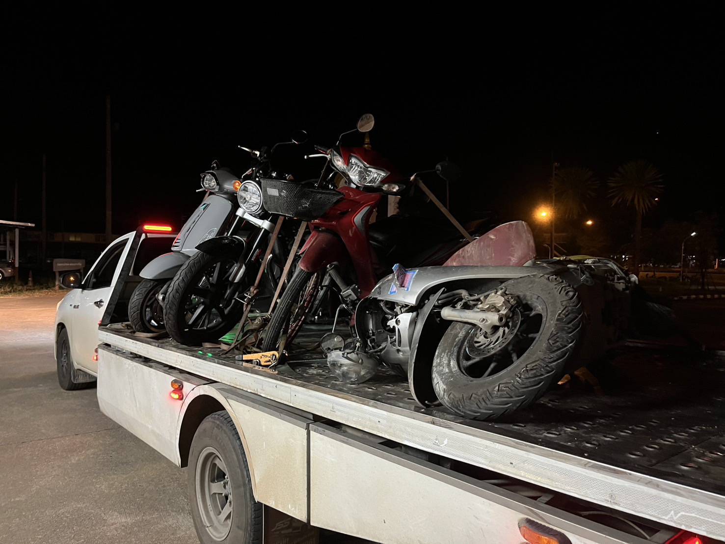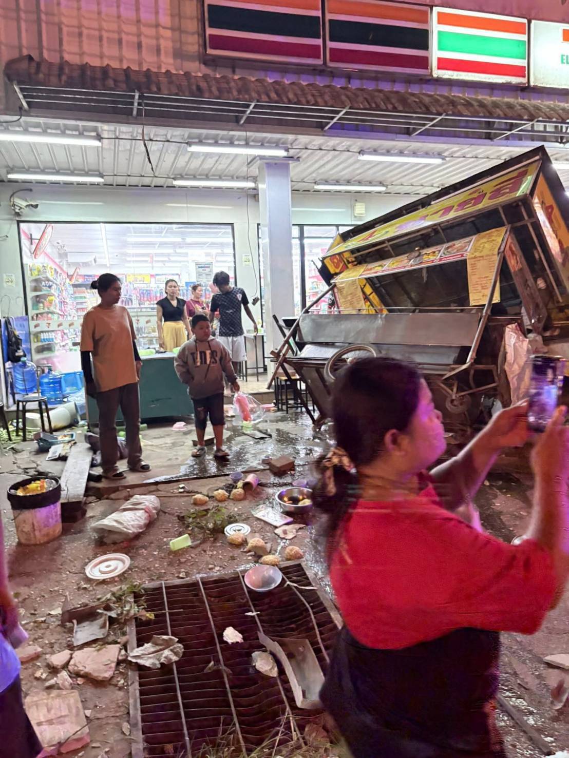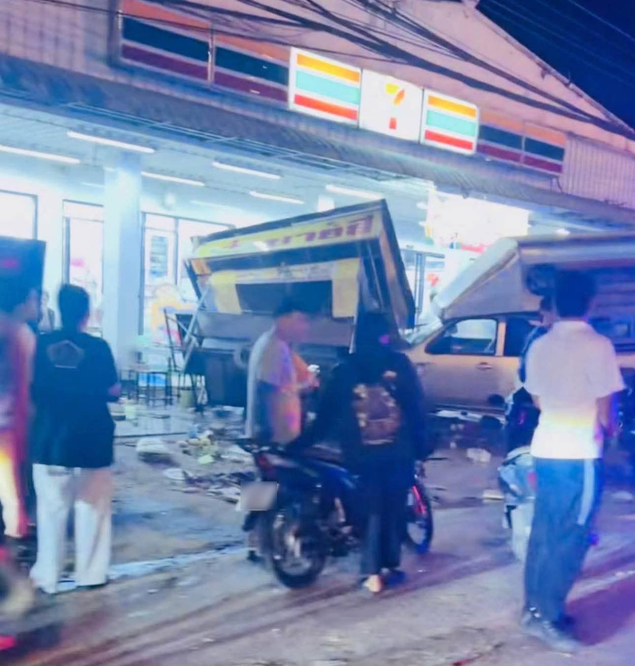 โดยในที่เกิดเหตุหน้าร้านสะดวกซื้อยังพบรถได้รับความเสียหายเป็นจำนวนมาก ได้แก่ รถยนต์กระบะตู้ทึบยี่ห้อมาสด้า BT50 สีบรอนซ์ทอง ทะเบียนระยอง มีร่องรอยถูกชนด้านหลังรถ รถเข็นร้านชายสี่บะหมีเกี๊ยว รถซาเล้งขายโรตี ก็ถูกชนพัง และคนขายโรตีได้รับบาดเจ็บ ทางเจ้าหน้าที่กู้ภัยช่วยเหลือปฐมพยาบาลเบื้องต้นก่อนนำส่ง รพ. และนอกจากนี้ยังมีรถมอเตอร์ไซค์ได้รับความเสียหายอีก 4 คัน ประกอบด้วย รถมอเตอร์ไซค์ยี่ห้อฮอนด้า สกู้ปปี้ ไอ สีเทา ทะเบียน เชียงราย พังเสียหายหนักทั้งคัน รถมอเตอร์ไซค์ยี่ห้อฮอนด้า เวฟ สีแดง ทะเบียน เชียงราย รถมอเตอร์ไซค์บิ๊กไบค์ยี่ห้อรอยัล เอ็นฟิลด์ สีดำ ทะเบียน กทม. และรถมอเตอร์ไซค์ยี่ห้อเวสป้า สปริ้นท์ 150 สีขาว ทะเบียน เชียงราย ได้รับความเสียหายระดับปานกลาง