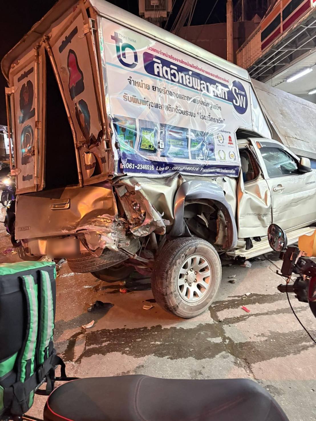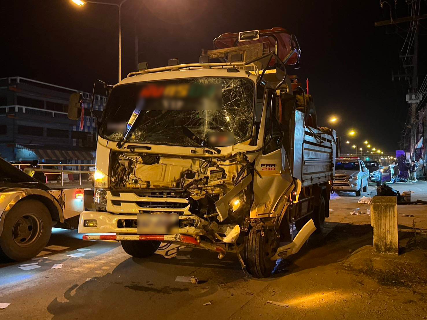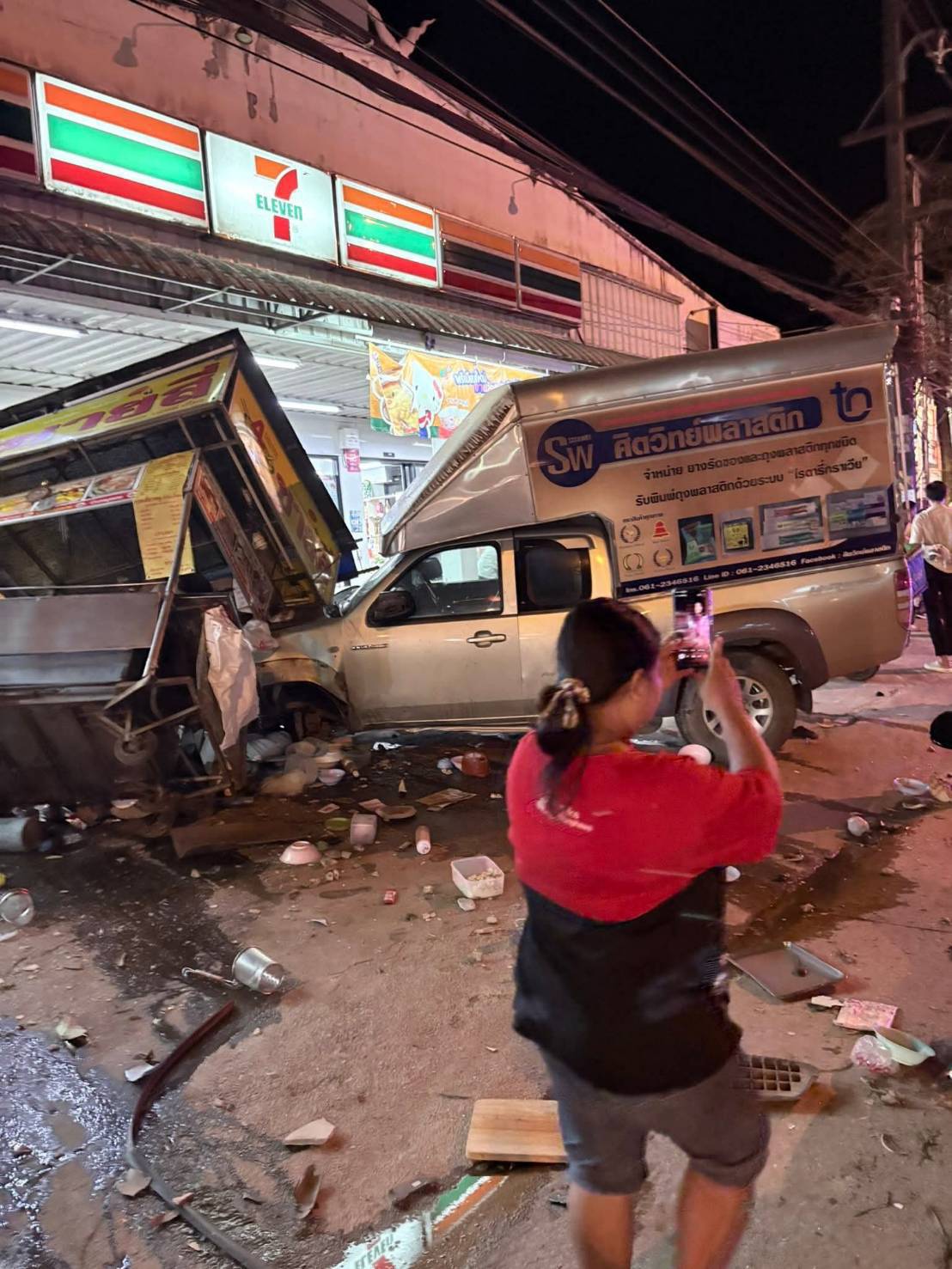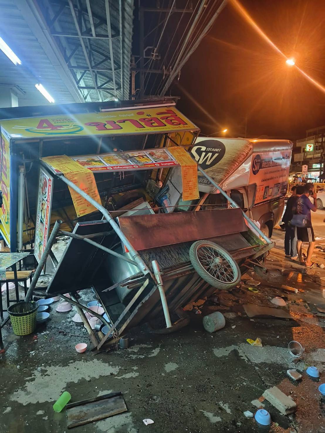 รถบรรทุกเมาแอ๋ฝ่าทุกไฟแดง พุ่งชนดะหน้าตลาดใกล้ มฟล. รถเสียหายรวม 8 คัน บาดเจ็บ 1 ราย คนขับอาศัยช่วงชุลมุนหลบหนี