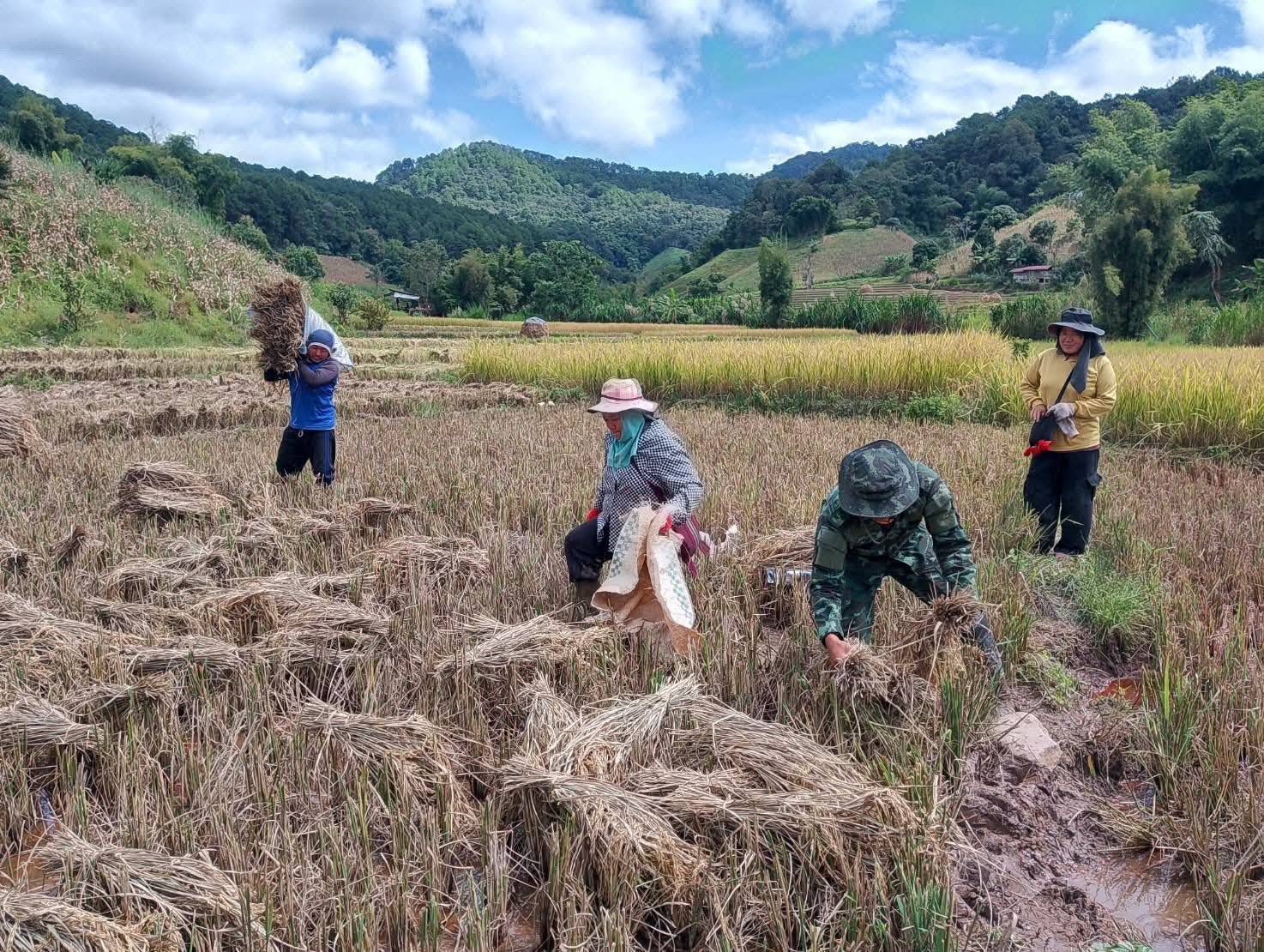 เมื่อวันที่ 22 ตุลาคม 2568 เวลา 08.30 น. มณฑลทหารบกที่ 38 (มทบ.38) โดย ชุดประสานงานและคุ้มครองป้องกันชุมชน โครงการสถานีพัฒนาการเกษตรที่สูงตามพระราชดำริ ภูพยัคฆ์ ได้นำกำลังพลลงพื้นที่ บ้านน้ำรีพัฒนา ตำบลขุนน่าน อำเภอเฉลิมพระเกียรติ จังหวัดน่าน เพื่อให้การช่วยเหลือเกษตรกรในพื้นที่ขนข้าวพันธุ์ข้าวเหนียว กข.6 เตรียมนำไปนวดในแปลงนาของ นายสมเกียรติ เขิบแปรง ราษฎรในพื้นที่