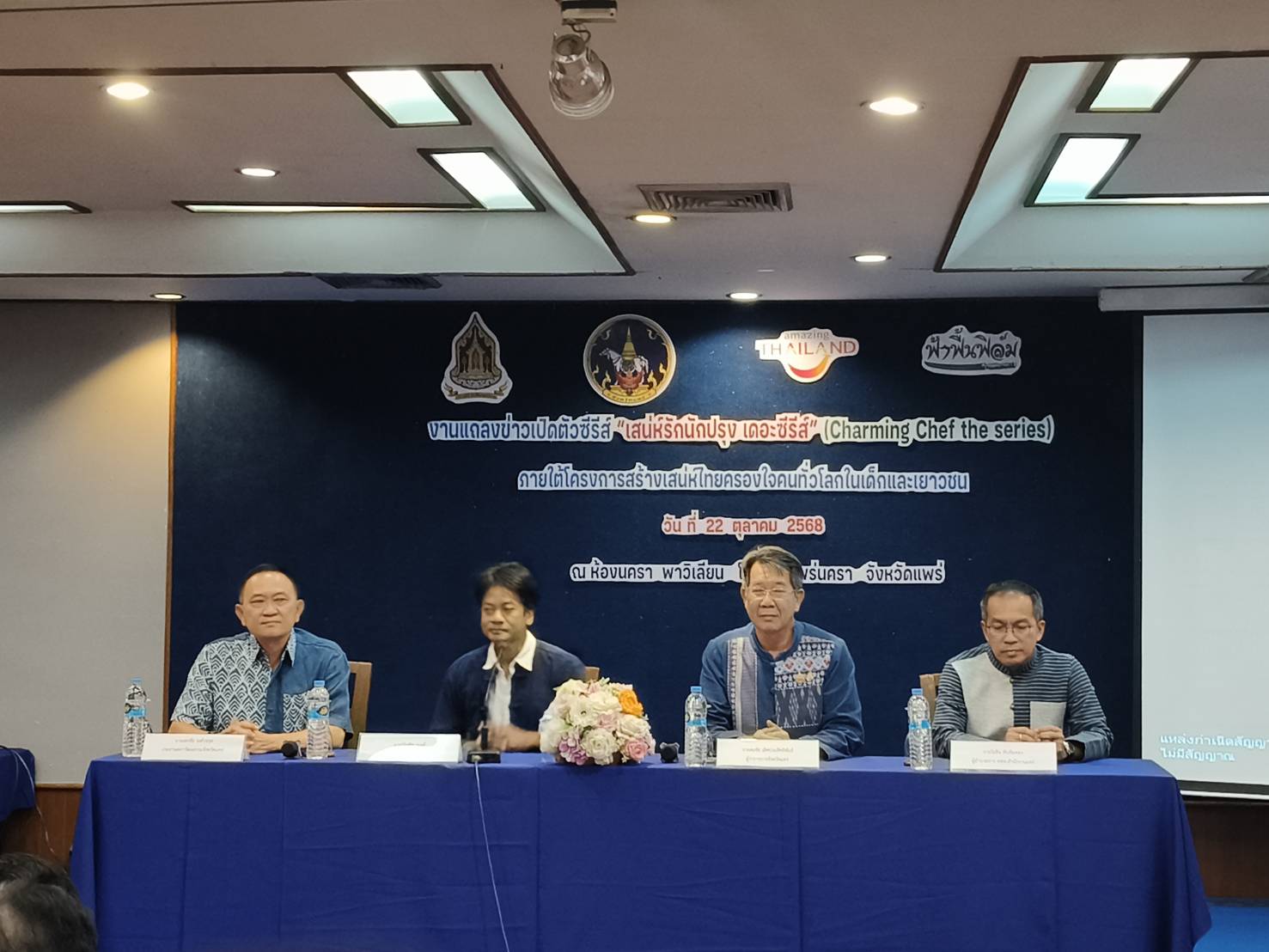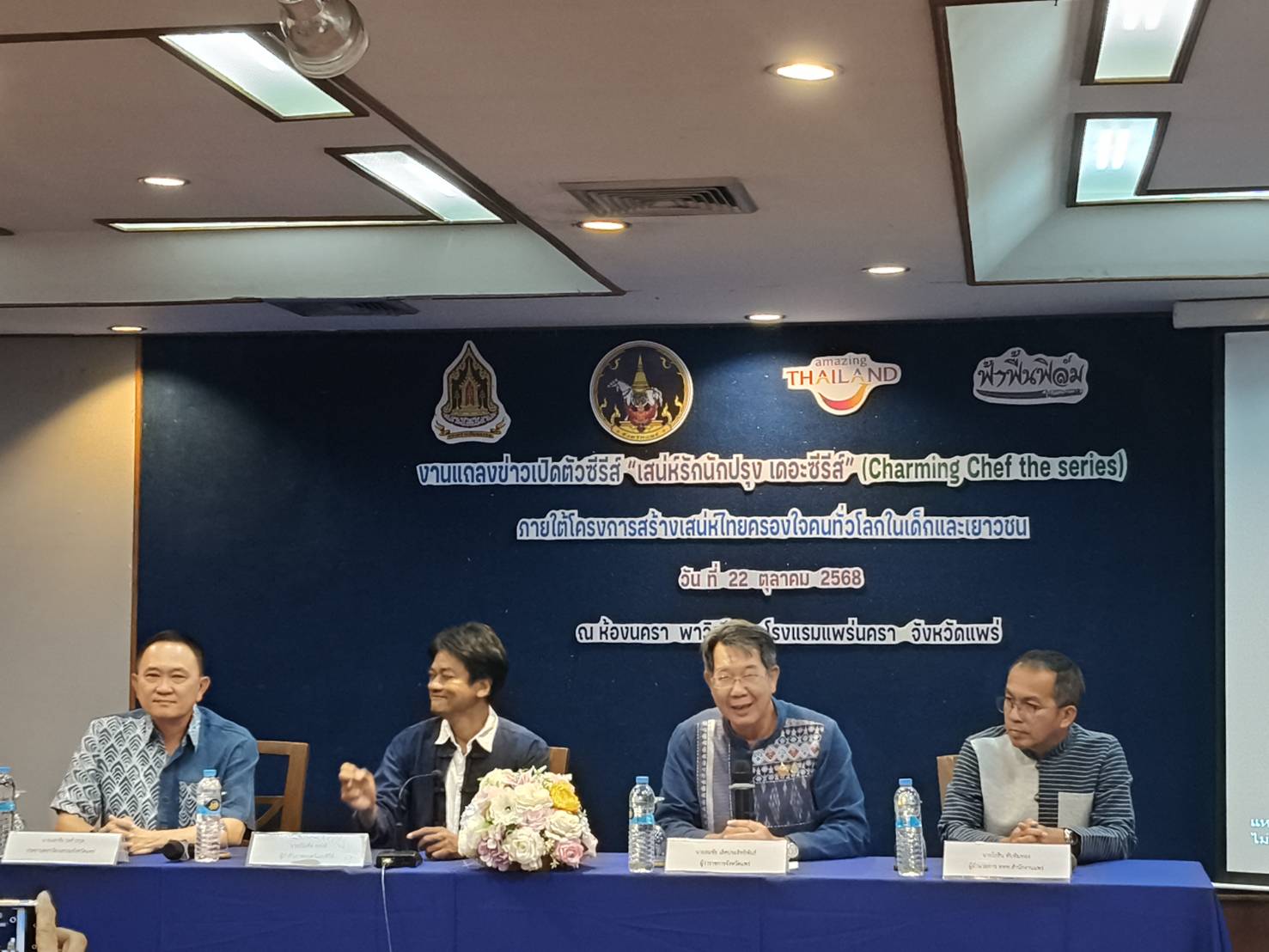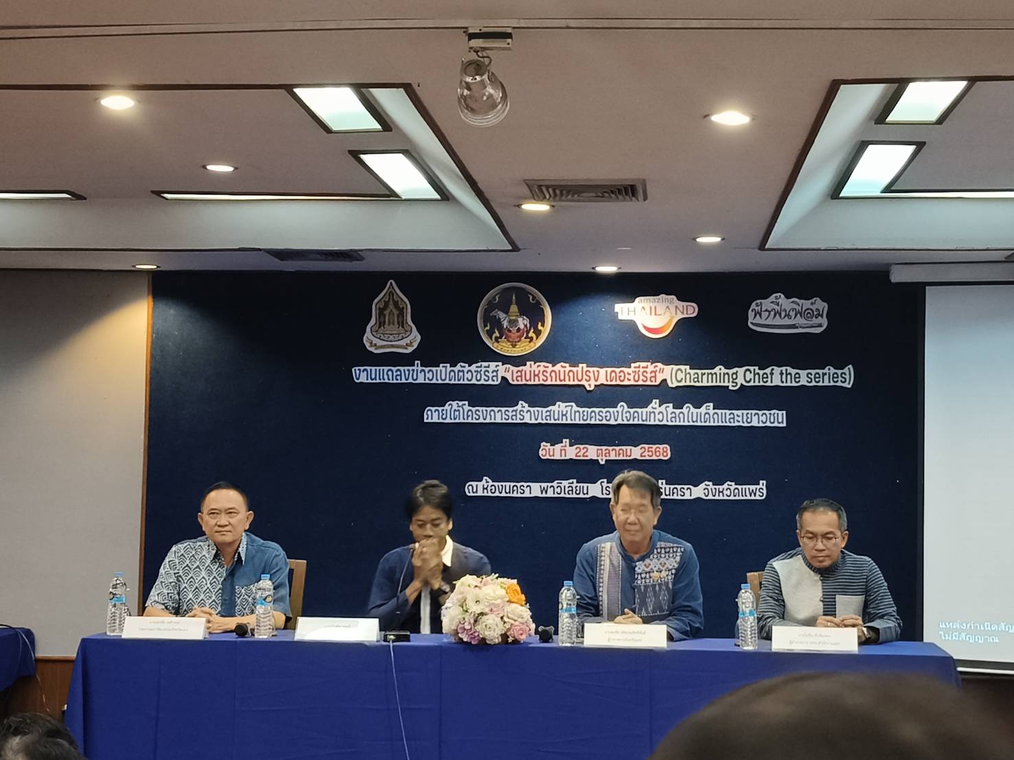 วันพุธที่ 22 ตุลาคม 2568 เวลา 16.00 น. นายสมชัย เลิศประสิทธิพันธ์ ผู้ว่าราชการจังหวัดแพร่ เป็นประธานพิธีงานแถลงข่าวเปิดตัวซีรีส์ “เสน่ห์รักนักปรุง เดอะซีรีส์ ” (Charming Chef the series) เพื่ออนุรักษ์ ฟื้นฟู พัฒนา ต่อยอดศิลปะ วัฒนธธรรม และส่งเสริม