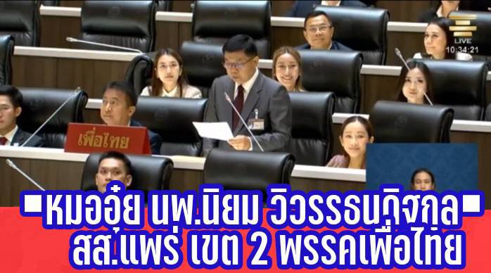 เมื้อวันทึ่22 ตุลาคม 268เวล่10.30 น. ในการประชุมสภาผู้แทนราษฏร หมออุ๋ย นพ.นิยม วิวรรธรธนดิฐกุล สส.แพร่ เขต 2 พรรคเพื่อไทย ได้อภิปรายการทอในที่ประชุมในเรื่องของราคาข้าวเปลือกเหนียวที่ตกต่ำมากทำให้เกษตรกรเดือดร้อน