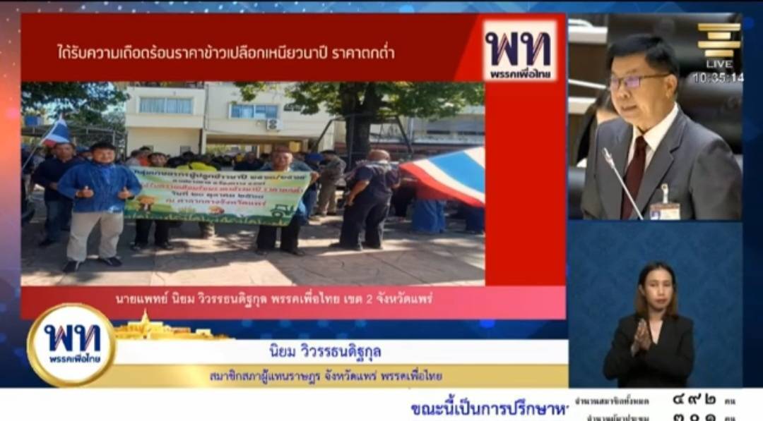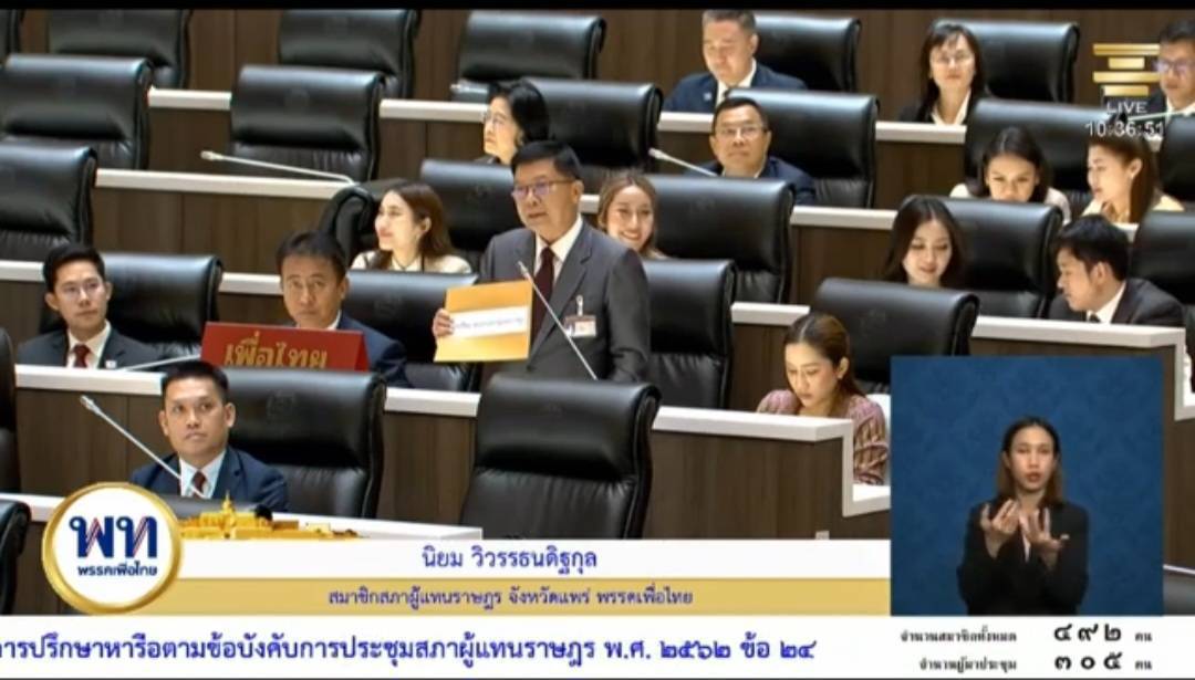 หมออุ๋ย สส.แพร่ เขต 2 พท.จี้รัฐบาลในสภาให้พาณิชย์แก้ไขปัญหาราคาข้าวเหนียวตกต่ำ ให้ชาว อ.ร้องกวาง