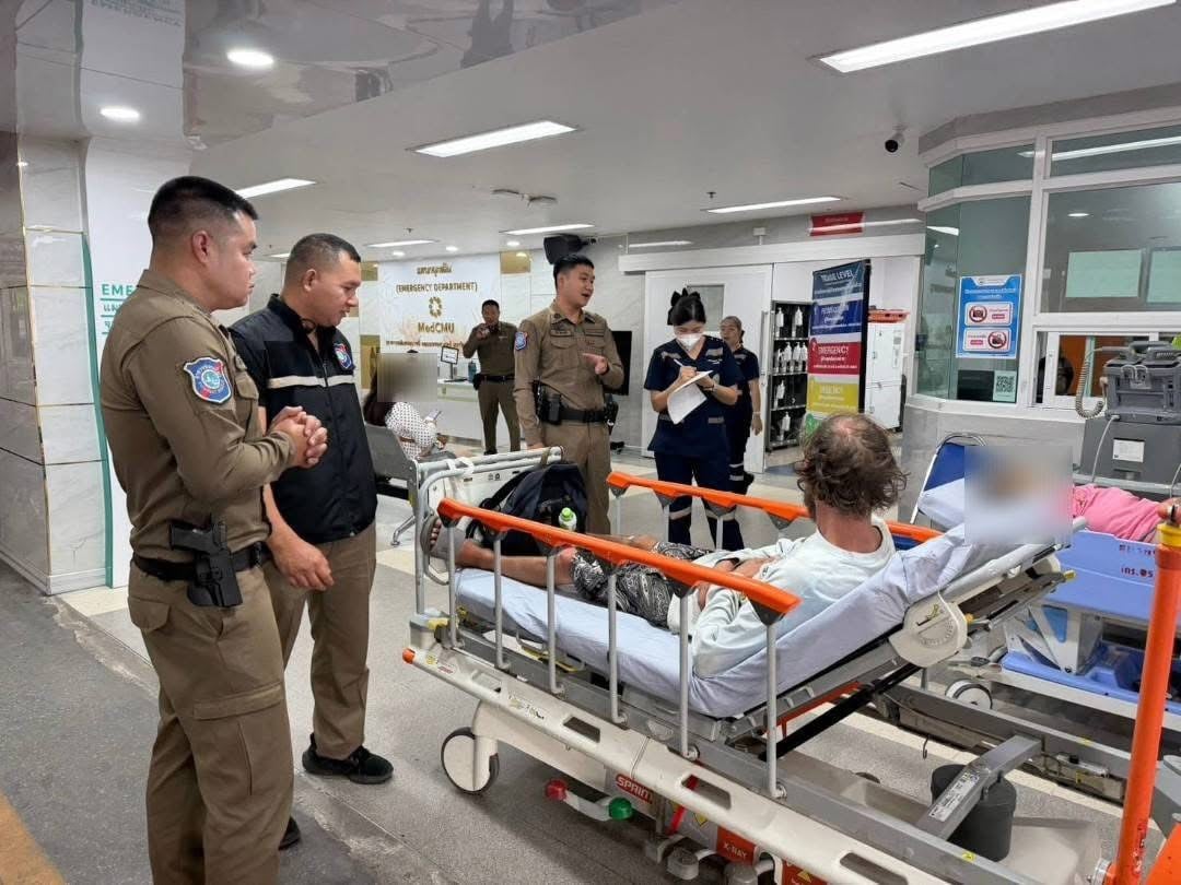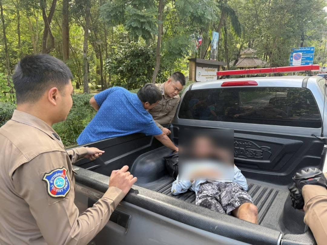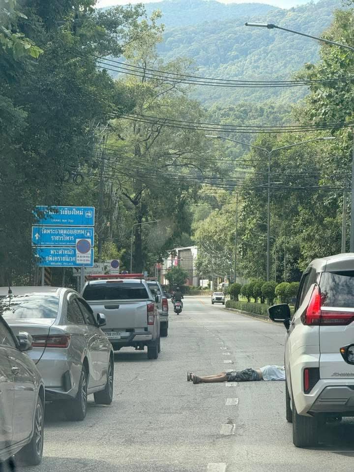นักท่องเที่ยวป่วน นอนขวางทางการจราจรบนถนนห้วยแก้ว ลำบากตำรวจท่องเที่ยวเจรจาเกลี้ยกล่อมอยู่นาน สุดท้ายนำตัวส่ง รพ.สำเร็จ