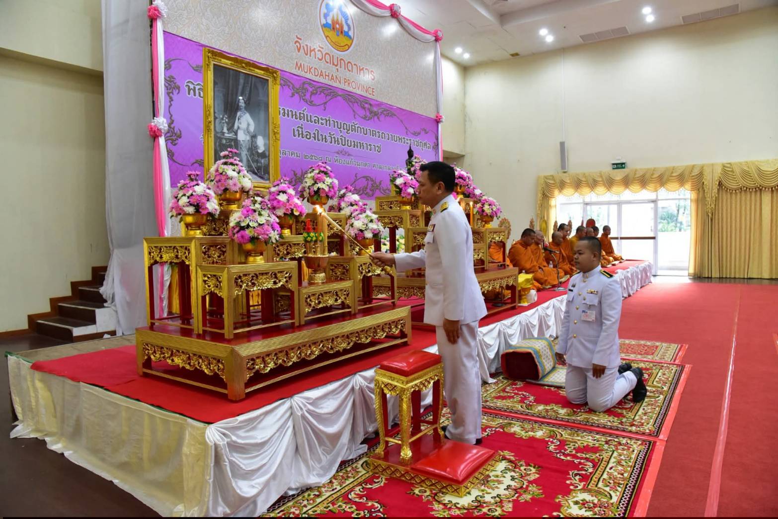 เหล่ากาชาดจังหวัดมุกดาหาร ร่วมพิธีสวดพระพุทธมนต์และทำบุญตักบาตรถวายพระราชกุศล เนื่องในวันปิยมหาราช
