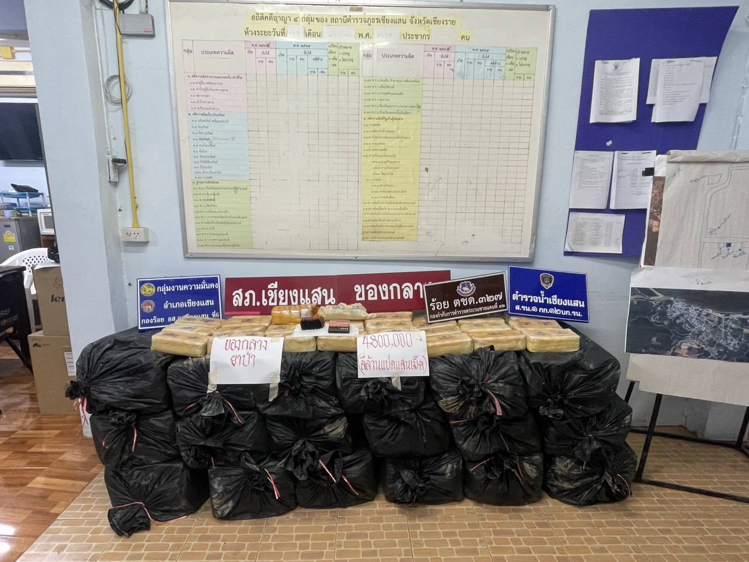 เจ้าหน้าที่ตำรวจจึงเข้าตรวจสอบรถ พบมีกระสอบฟางวางอยู่ที่บรรทุกท้ายรถและในเบาะนั่งในรถพบมีจำนวน 20 ใบ ภายในมีของกลางยาบ้าทั้งหมด 4,800,000 เม็ดดังกล่าว จึงนำส่งพนักงานสอบสวน สภ.เชียงแสน เพื่อดำเนินการตรวจตามกฎหมายต่อไป.