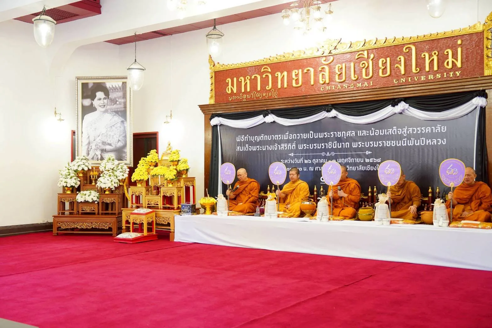 โดยมหาวิทยาลัยเชียงใหม่จะจัดพิธีทำบุญตักบาตรเพื่อถวายเป็นพระราชกุศล สมเด็จพระนางเจ้าสิริกิติ์ พระบรมราชินีนาถ พระบรมราชชนนีพันปีหลวง พระผู้เสด็จสู่สวรรคาลัย ติดต่อกันเป็นเวลา 7 วัน ระหว่างวันอาทิตย์ที่ 26 ตุลาคม ถึงวันเสาร์ที่ 1 พฤศจิกายน 2568 เวลา 07.30 น. ณ ศาลาธรรม มหาวิทยาลัยเชียงใหม่