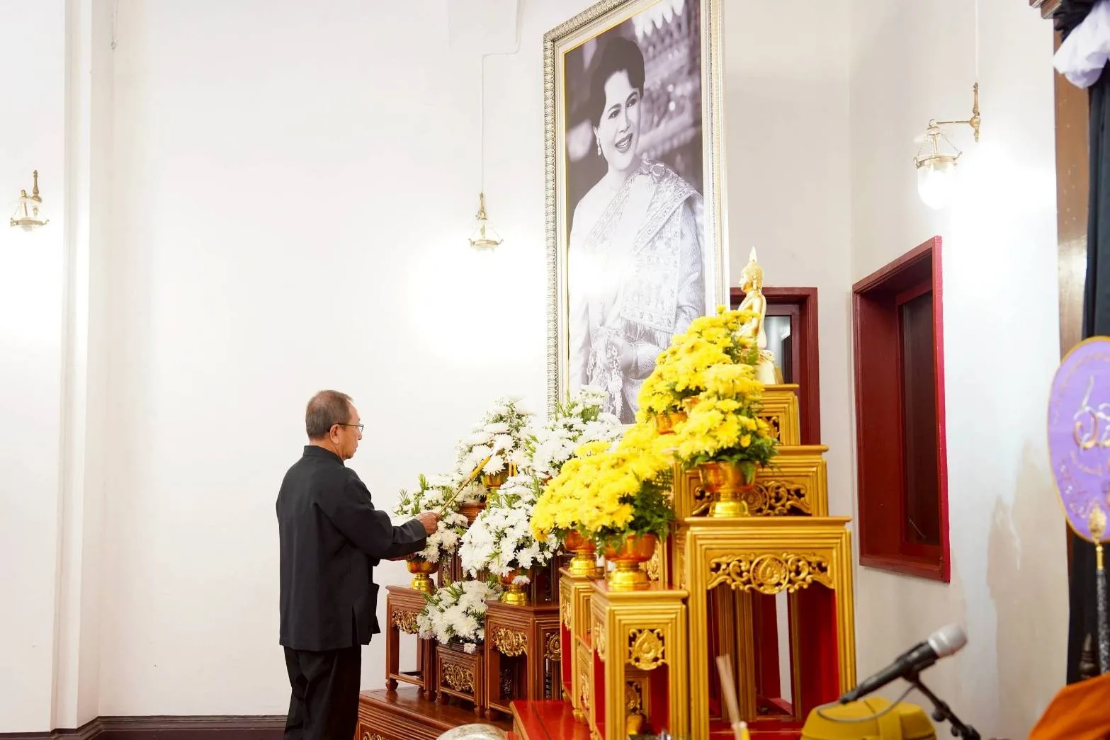 รศ.นพ.นเรนทร์ โชติรสนิรมิต คณบดีคณะแพทยศาสตร์ มหาวิทยาลัยเชียงใหม่ พร้อมด้วย ผศ.พญ.พุดตาน วงศ์ตรีรัตนชัย รองคณบดีด้านสื่อสารองค์กร, รศ.ดร.พญ.จิราภรณ์ โกรานา รองคณบดีด้านการฝึกอบรมแพทย์เฉพาะทาง และ คุณอรวรรณ เร่งเร็ว หัวหน้างานบริหารทั่วไป ร่วมพิธีทำบุญตักบาตรเพื่อถวายเป็นพระราชกุศล สมเด็จพระนางเจ้าสิริกิติ์ พระบรมราชินีนาถ พระบรมราชชนนีพันปีหลวง พระผู้เสด็จสู่สวรรคาลัย