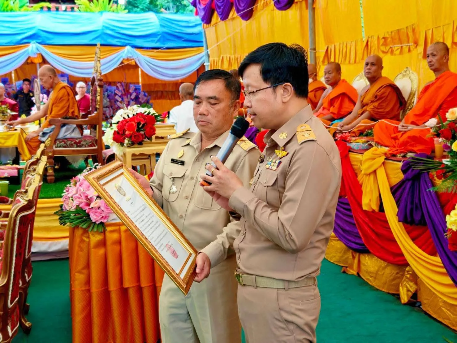 ในการนี้ พระเดชพระคุณ พระครูสิริอาภากร เจ้าคณะอำเภอแม่ริม เจ้าอาวาสวัดศรีบุญเรือง เป็นประธานในพิธีฝ่ายสงฆ์ โดยมีพระเถรานุเถระ ศิษยานุศิษย์ และประชาชนในพื้นที่เข้าร่วมพิธี