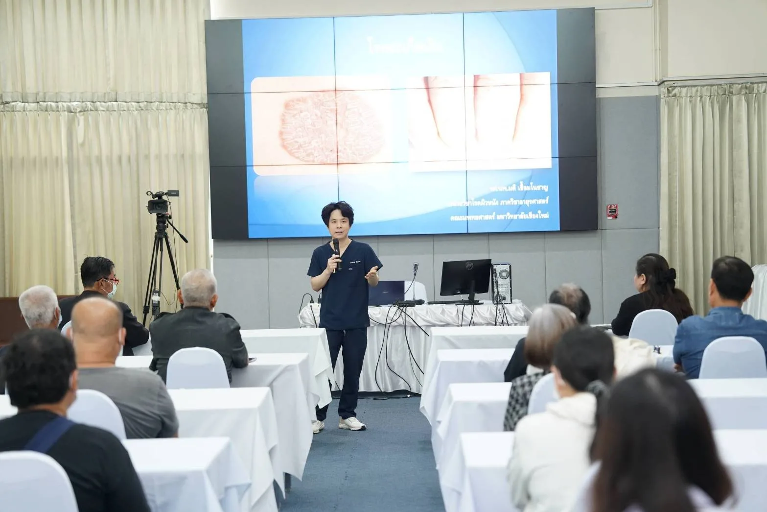 ในโอกาสนี้ ได้รับเกียรติจาก รศ.นพ.มติ เชื้อมโนชาญ อาจารย์ประจำหน่วยวิชาโรคผิวหนัง ภาควิชาอายุรศาสตร์ คณะแพทยศาสตร์ มช., ผศ.นพ.ปกรณ์ วิวัฒน์วงศ์วนา อาจารย์ประจำภาควิชาเวชศาสตร์ฟื้นฟู และ ผศ.พญ.ชวิศา สุระดม อาจารย์ประจำภาควิชาจิตเวชศาสตร์ คณะแพทยศาสตร์ มช. ร่วมเป็นวิทยากรบรรยาย