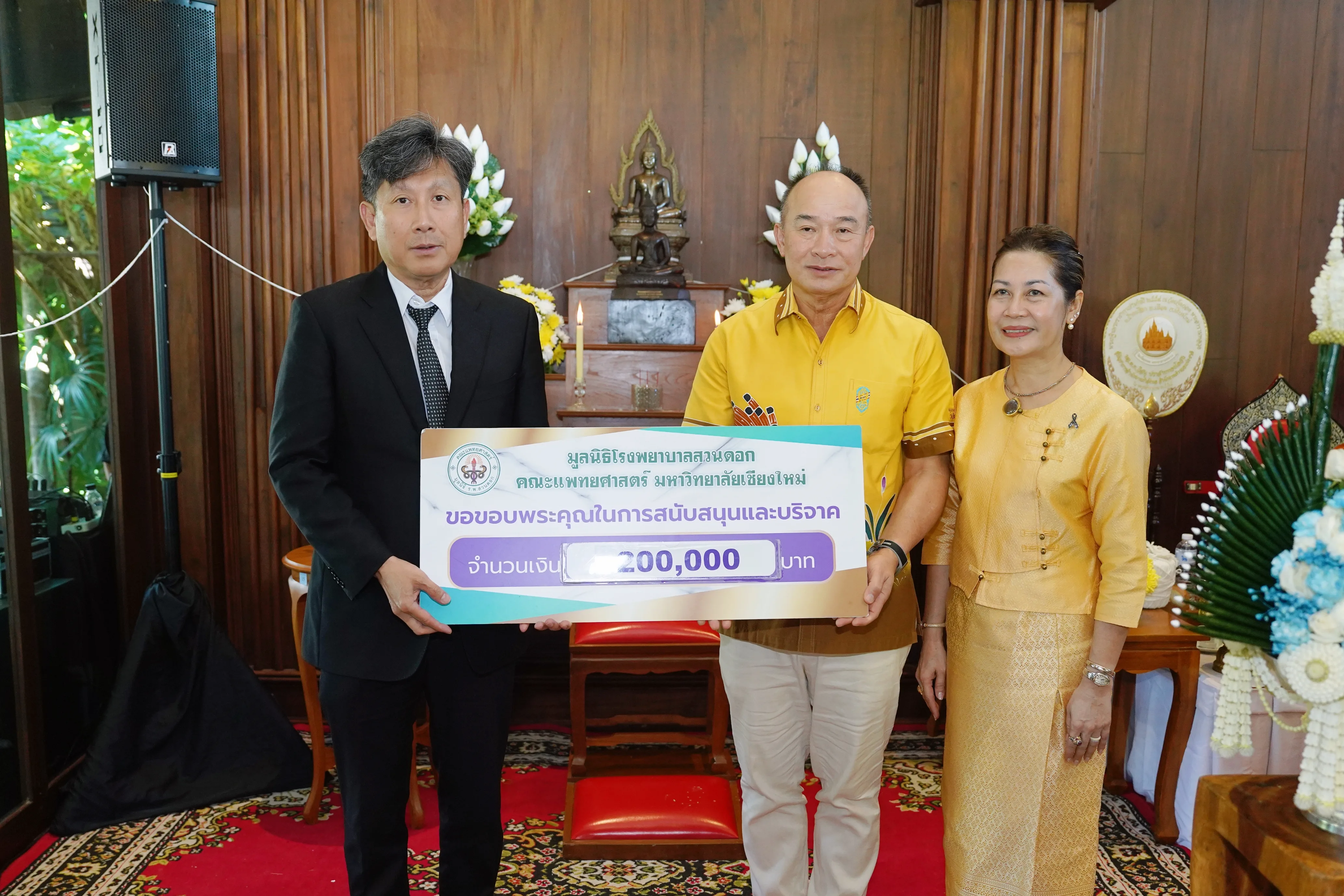 รศ.นพ.ณัฐพงศ์ โฆษชุณหนันท์ รองคณบดีด้านบริหารทั่วไป คณะแพทยศาสตร์ มหาวิทยาลัยเชียงใหม่ รับมอบเงินบริจาคจำนวน 200,000 บาท
