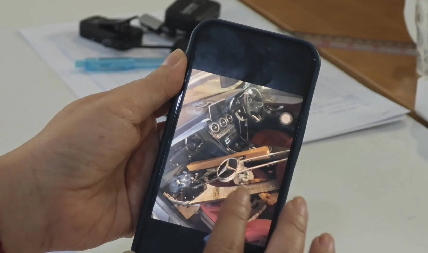 นางสาวจินตนา นำหลักฐานร้องเรียนกับผู้สื่อข่าว กรณีนำรถเก๋งเบนซ์ C250 สีบรอนซ์เทา ทะเบียนกรุงเทพมหานคร ที่ประสบอุบัติเหตุส่งซ่อมที่อู่ซ่อมรถชื่อดังแห่งหนึ่งใน จ.เชียงใหม่ แต่ผ่านมา 9 เดือนก็ยังไม่เสร็จ เห็นสภาพรถแล้วใจหาย ติดตามสอบถามมาเป็นสิบครั้งทางอู่ก็ยังบอกไม่ได้ว่าจะเสร็จเมื่อไหร่ ทำให้เดือดร้อนหนัก โดยเล่าว่าเมื่อวันที่ 5 กุมภาพันธ์ 2568 เธอและครอบครัวขับรถไปทำบุญและถูกรถคู่กรณีพุ่งข้ามเลนมาชนจนรถได้รับความเสียหาย