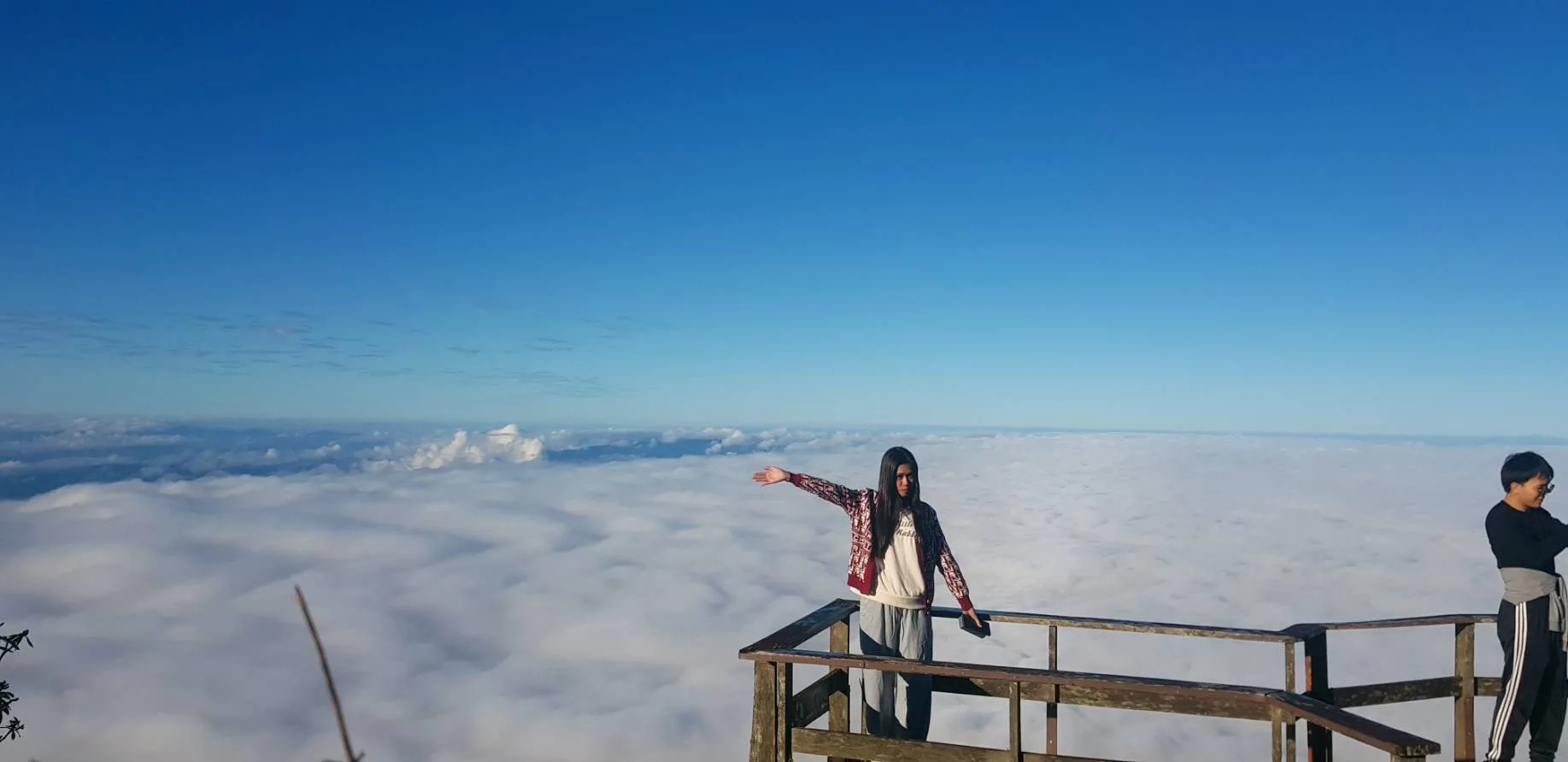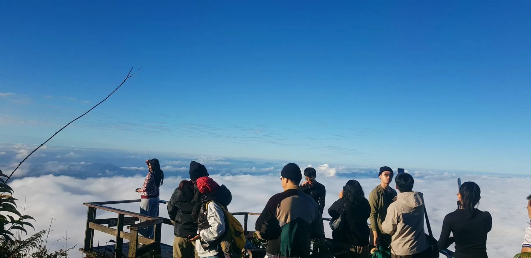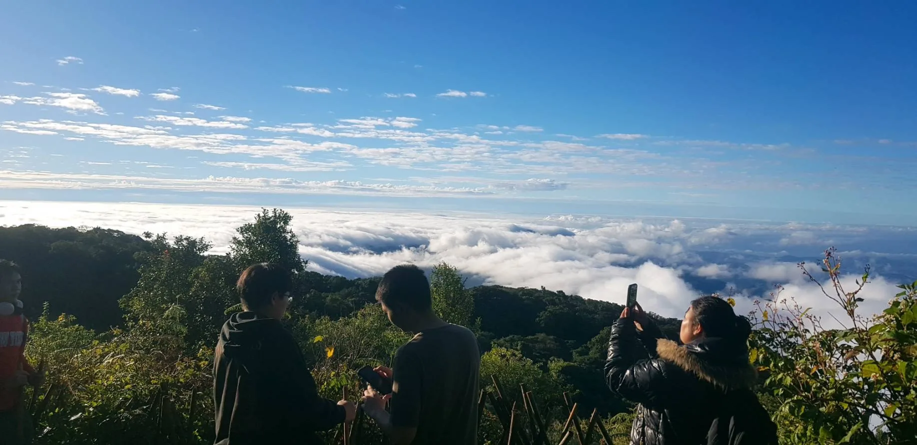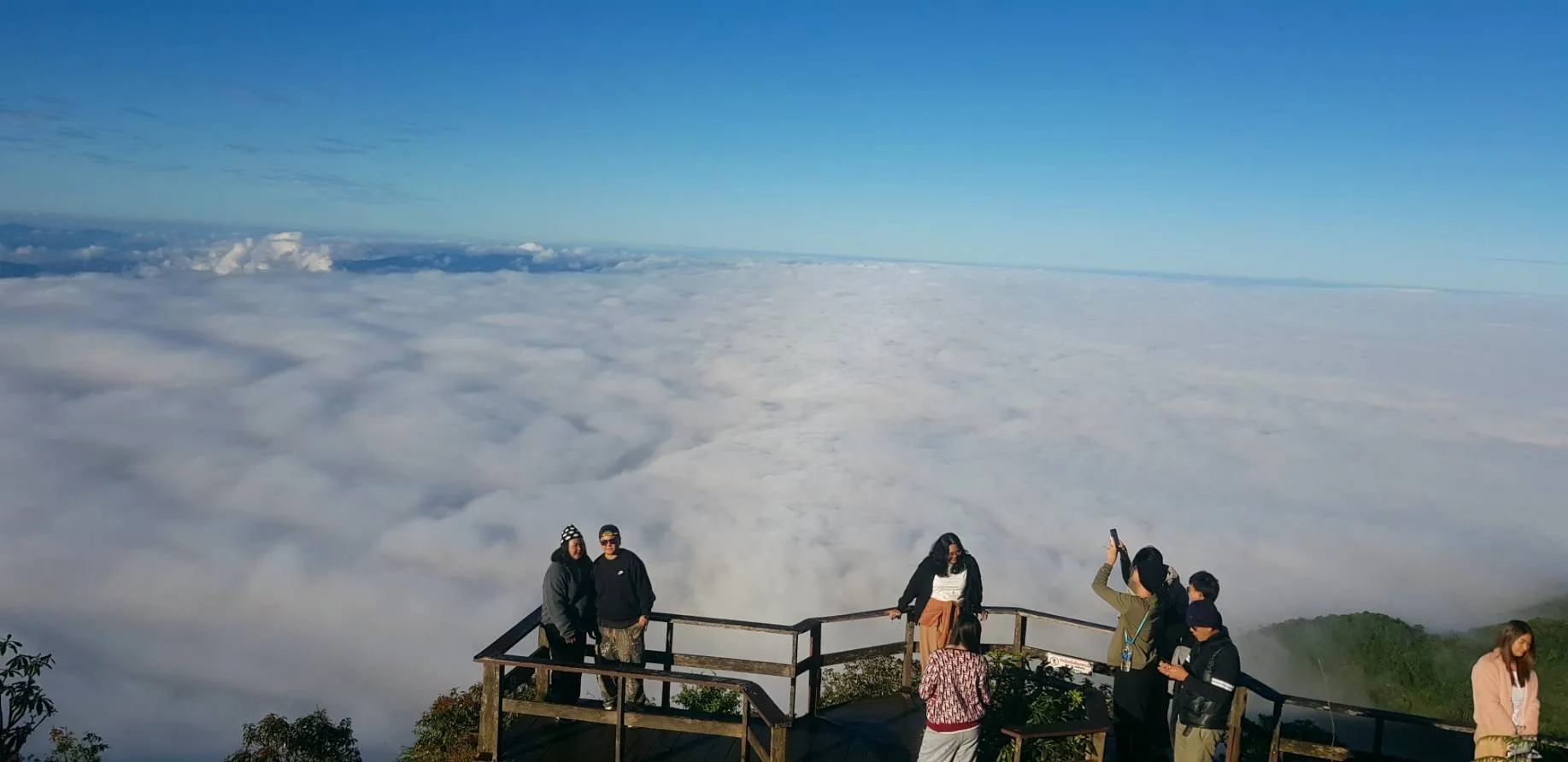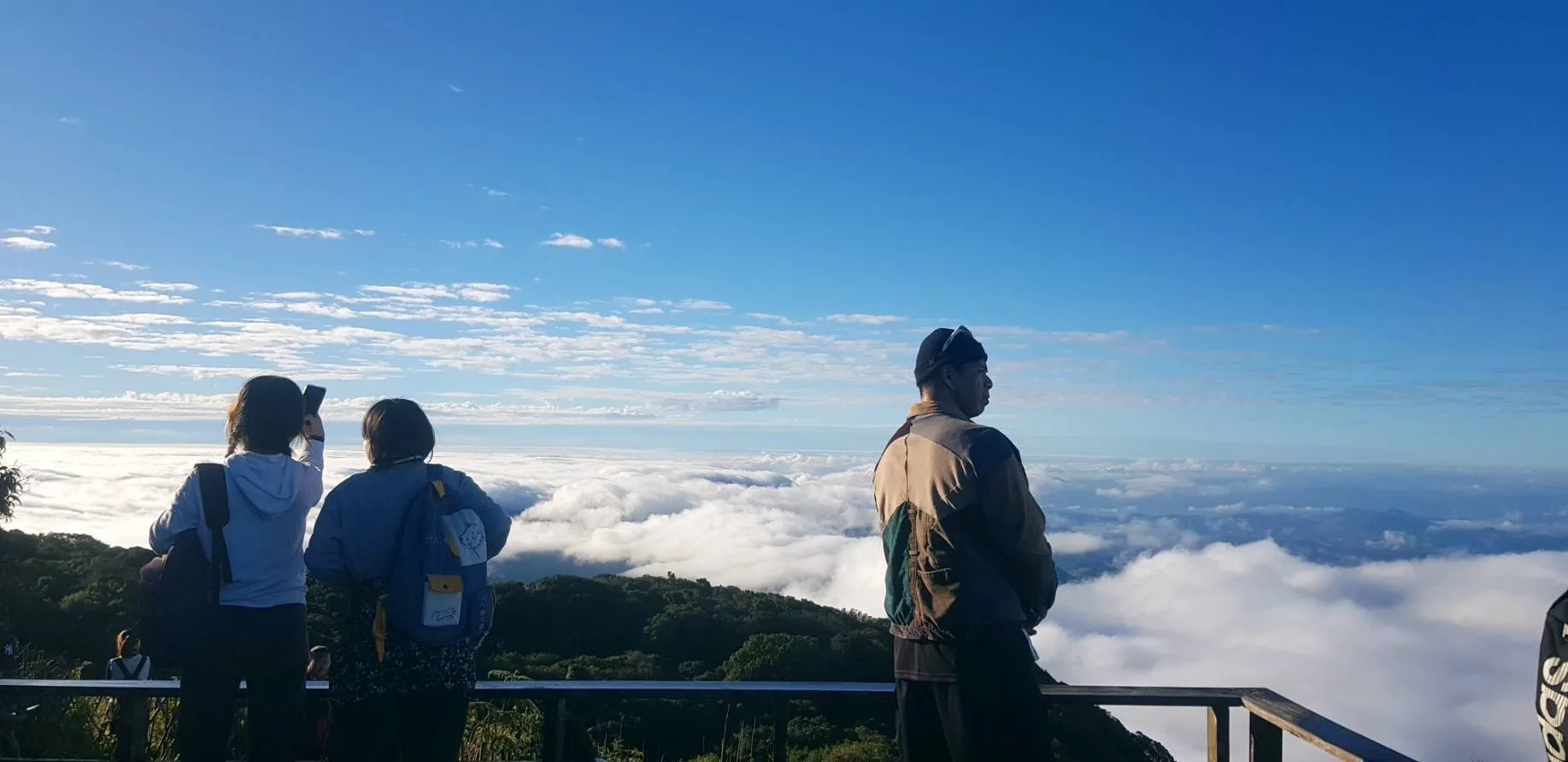 วันนี้นักท่องเที่ยวมีความสุขมากที่ดอยอินทนนท์ ท้องฟ้าเปิด บางคนยืนบนหลังคารถกางแขนรับแสงอาทิตย์ยามเช้า ,บางรายบันทึกภาพทะเลหมอกที่ขาวโพลอย่างมีความสุข สวมเสื้อกันหนาวกันหลากหลายแฟชั่น