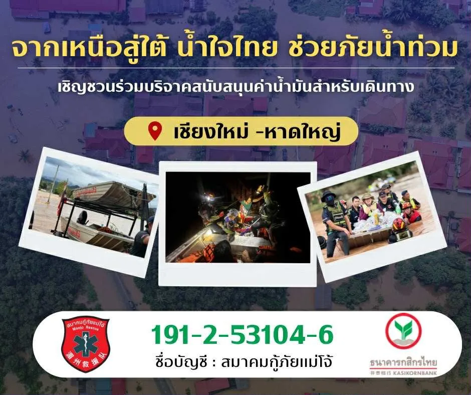 ชื่นชมและส่งกำลังใจให้เจ้าหน้าที่กู้ภัยแม่โจ้ เดินทางสนับสนุนช่วยน้ำท่วมที่หาดใหญ่ ล่าสุดสุดนำกำลังเข้าช่วยเหลือเรือกู้ภัยคว่ำ ช่วยชีวิตกู้ภัยและชาวบ้านรวม 5 ราย ที่เกาะต้นไม้ไว้ได้ปลอดภัย