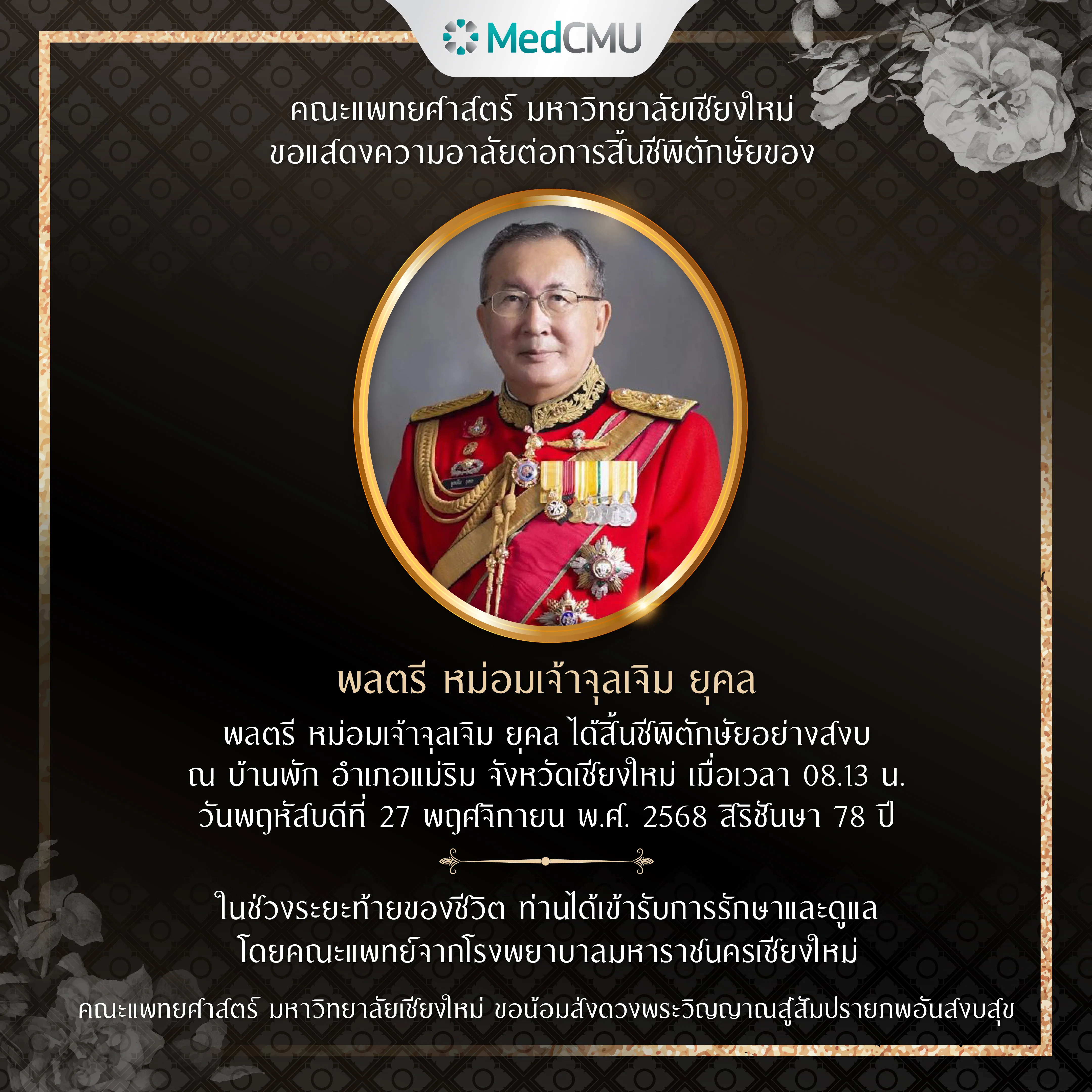 คณะแพทยศาสตร์ มหาวิทยาลัยเชียงใหม่ ขอน้อมส่งดวงพระวิญญาณสู่สัมปรายภพอันสงบสุข