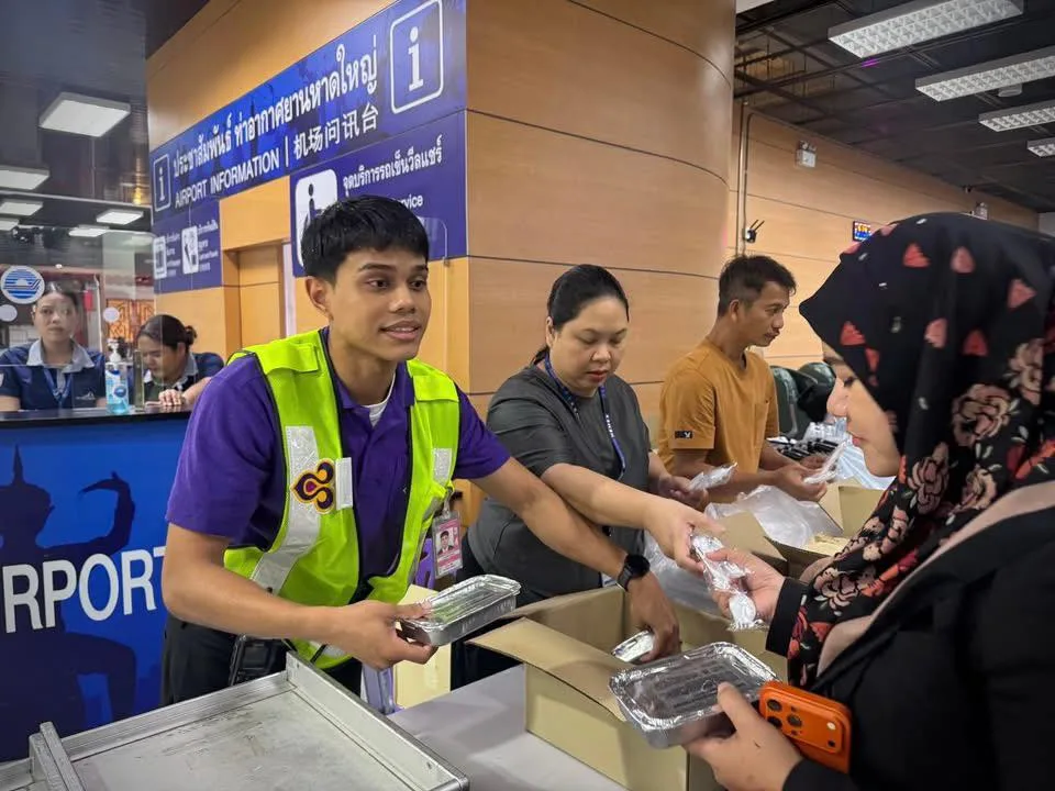 เมื่อช่วงเย็น 22 พฤศจิกายน 2568 การบินไทยได้ส่งต่อความห่วงใย ผ่านการจัดส่งอาหาร 750 ชุด ของว่าง 500 ชิ้น และน้ำดื่ม 3,000 ขวด ไปกับเที่ยวบินจากกรุงเทพฯ สู่หาดใหญ่ เพื่อมอบให้ผู้โดยสารทั้งขาเข้า–ขาออก ผู้โดยสารที่ติดค้างอยู่ที่สนามบิน รวมถึงเจ้าหน้าที่ที่ปฏิบัติหน้าที่ ณ บริเวณโถงผู้โดยสารขาออก ท่าอากาศยานหาดใหญ่ เพื่อช่วยบรรเทาความเดือดร้อนและเติมพลังใจให้ทุกท่าน ท่ามกลางสถานการณ์น้ำท่วมครั้งนี้