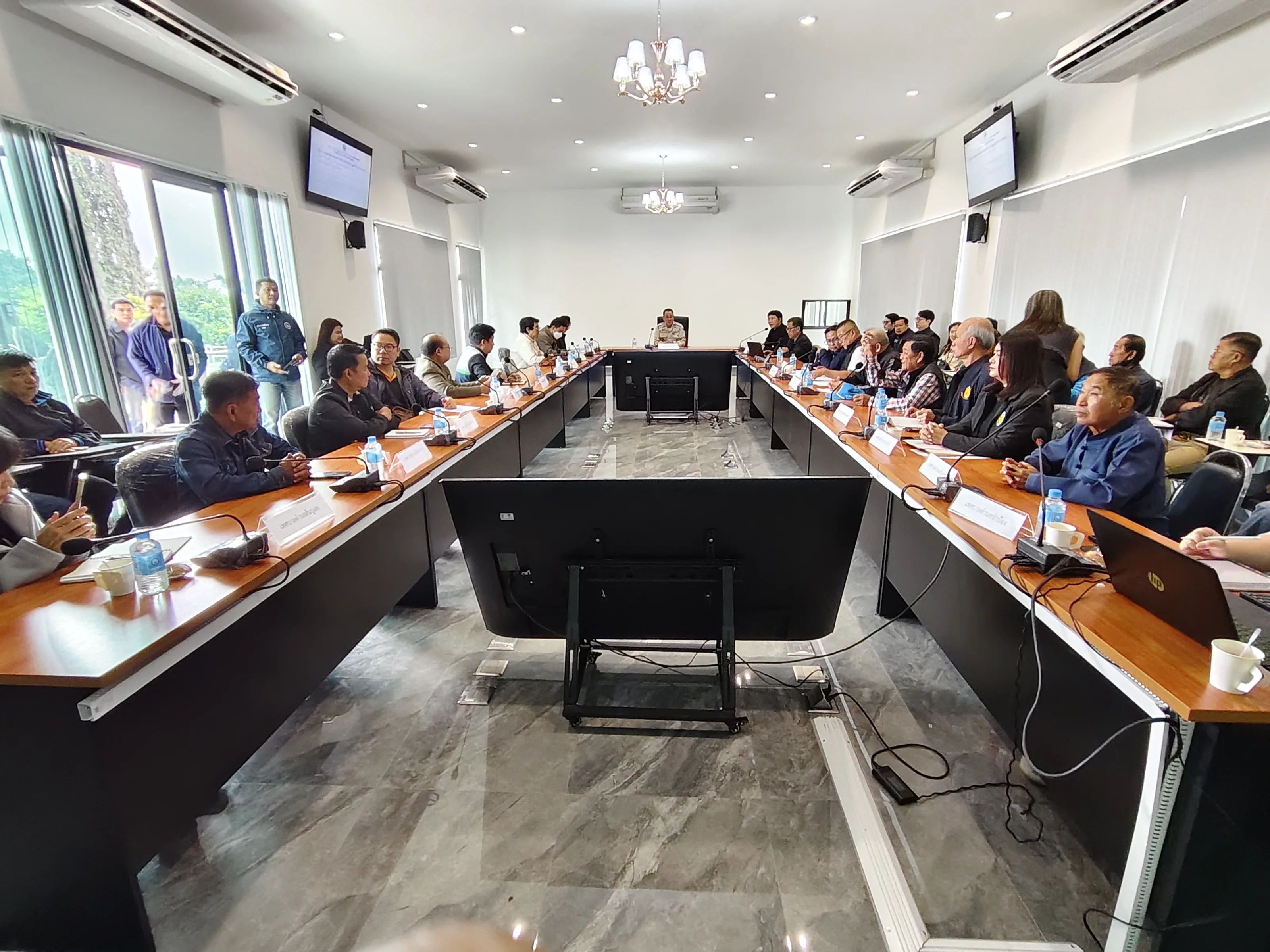 วันที่ 2 ธันวาคม 2568 ที่ผ่านมา ที่ห้องประชุมวารีนาคา โครงการส่งน้ำและบำรุงรักษาแม่กวงอุดมธารา (คบ.แม่กวงฯ) นายนิติฬ์ปกรน์ แสงษุวรรน์ นายอำเภอดอยสะเก็ด เป็นประธานการประชุมเพื่อพิจารณาวางแผนการบริหารจัดการน้ำฤดูแล้ง 2568/69 ร่วมกับ นายเฉลิมเกียรติ อินทกนก ผู้อำนวยการโครงการส่งน้ำและบำรุงรักษาแม่กวงอุดมธารา (ผคบ.แม่กวงฯ) พร้อมด้วย นายเกษียร สฤษดิกุล หัวหน้าฝ่ายจัดสรรน้ำและปรับปรุงระบบชลประทาน นายคมสัน วัดเข่ง หัวหน้าฝ่ายส่งน้ำและบำรุงรักษาที่ 1 นายทวีศักดิ์ ภิรมย์ หัวหน้าฝ่ายส่งน้ำและบำรุงรักษาที่ 2 นายอธิการ แสนสุวรรณศรี หัวหน้าฝ่ายส่งน้ำและบำรุงรักษาที่ 3 นายนนทวัฒน์ เข็มเงิน หัวหน้าฝ่ายส่งน้ำและบำรุงรักษาที่ 4 โดยมี ส.อบจ.ลำพูน เกษตรอำเภอ ผู้บริหารท้องถิ่น เกษตรกรกลุ่มผู้ใช้น้ำ อาสาสมัครชลประทาน และหน่วยงานที่เกี่ยวข้อง ในพื้นที อ.สันทราย อ.ดอยสะเก็ด สันกำแพง บ้านธิ และ อ.เมืองลำพูน ร่วมประชุม