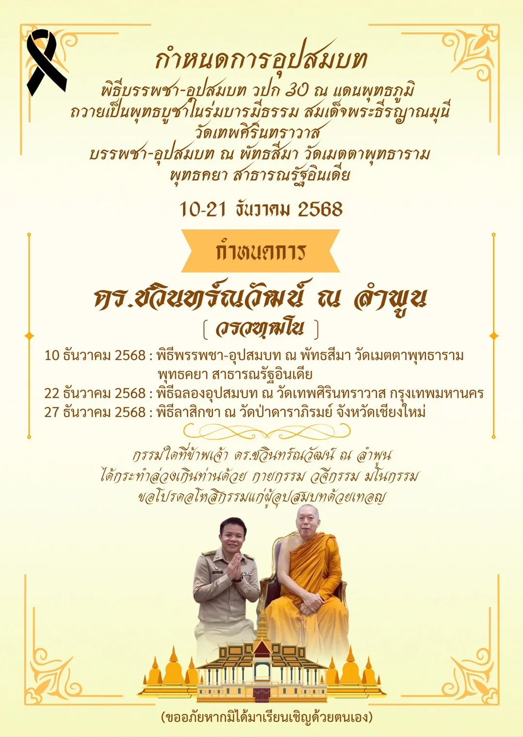 กำหนดการ ระหว่าง วันที่ 10-21 ธันวาคม 2568 ณ พัทธสีมา วัดเมตตาพุทธาราม พุทธคยา สาธารณรัฐอินเดีย