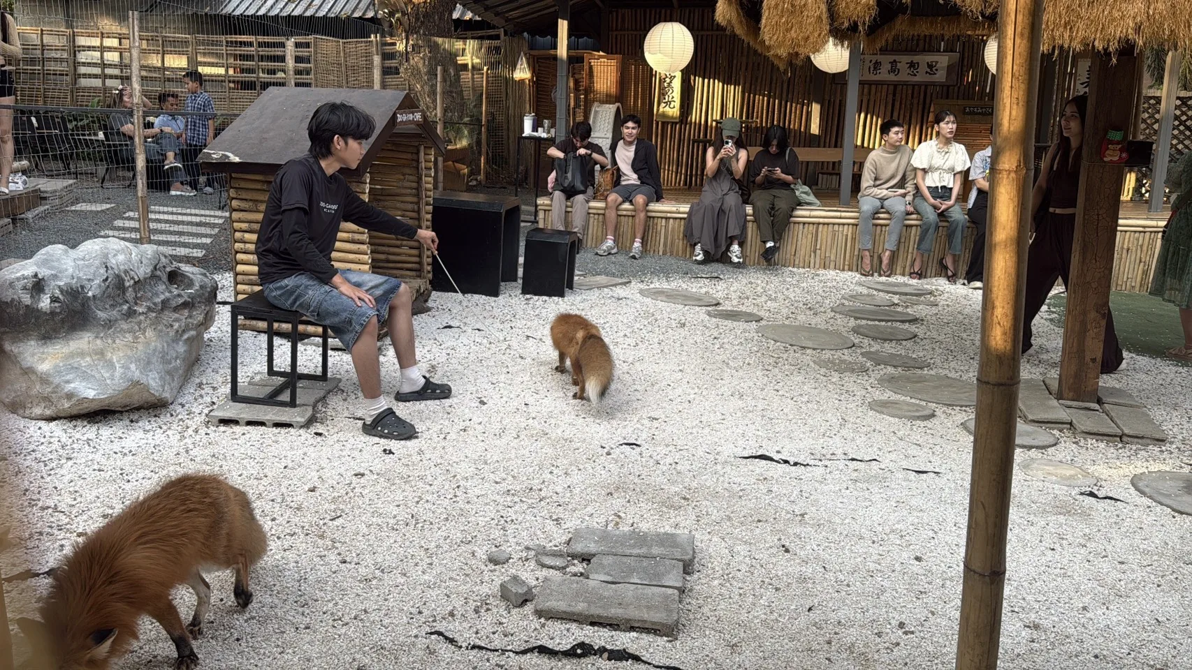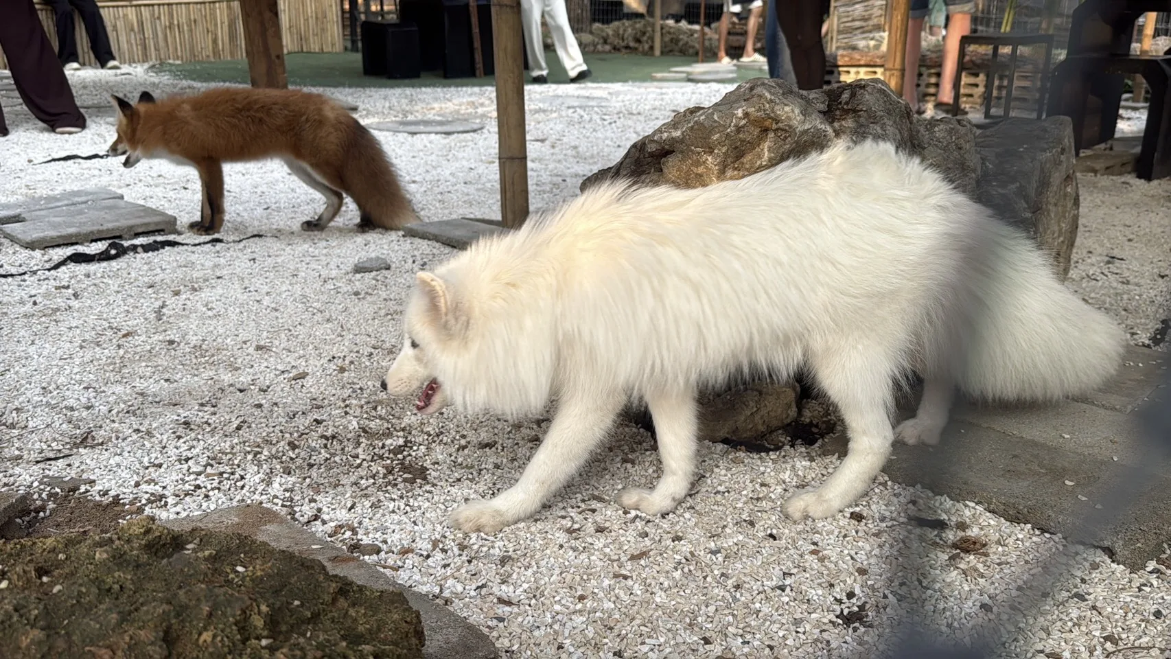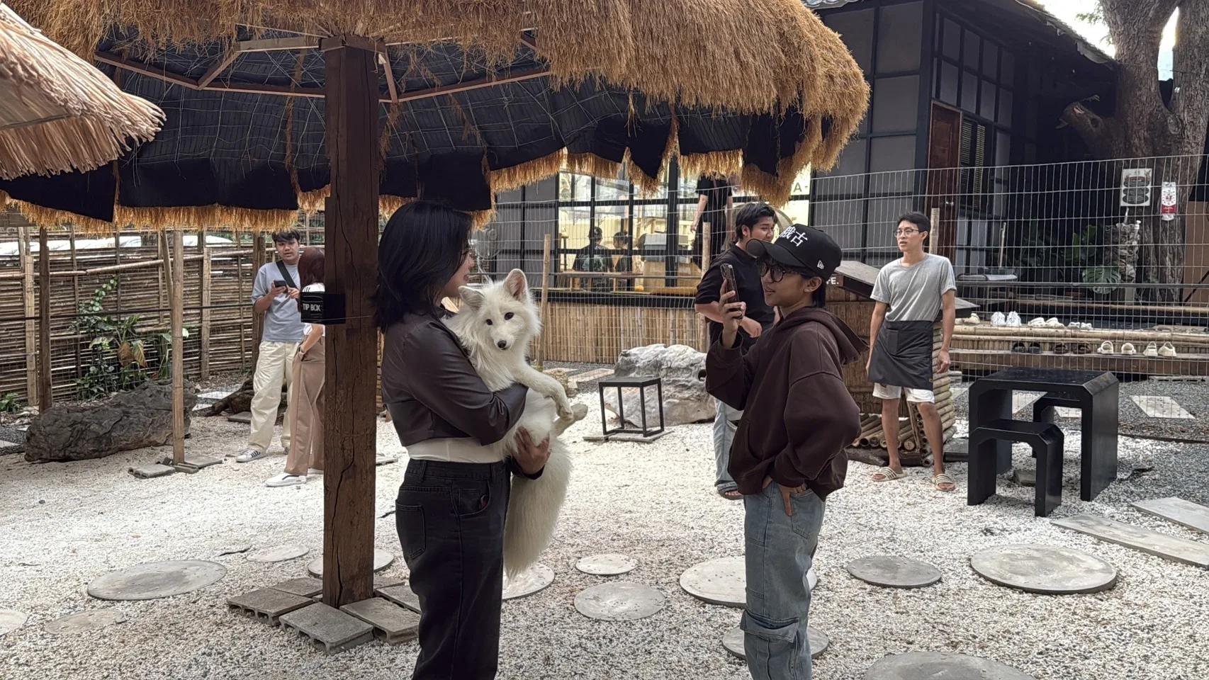สำหรับจุดเด่นของคาเฟ่แห่งนี้คือน้องจิ้งจอกแดงและจิ้งจอกขาวทั้ง 6 ตัวที่เชื่องสามารถอุ้มเล่นได้ ถ่ายรูปคู่กับน้องๆ ได้อย่างใกล้ชิดซึ่งจะแบ่ง ท่ามกลางสวนหินขาวที่สวยงามยิ่งทำให้ถ่ายที่ถ่ายออกมาสวยงามเพิ่มขึ้นอีก นักท่องเที่ยวที่มาใช้บริการหลายคนก็ไม่พลาดที่จะเข้าไปอุ้มน้องสุนัขจิ้งจอก ซึ่งหลายคนก็บอกเป็นเสียงเดียวกันว่าเพิ่งจะเคยสัมผัสตัวสุนัขจิ้งจอกหรือเพิ่งเคยเห็นสุนัขจิ้งจอกตัวเป็นเป็นครั้งแรก ทำให้แต่ละคนมีสนุกและความสุขเป็นอย่างมาก