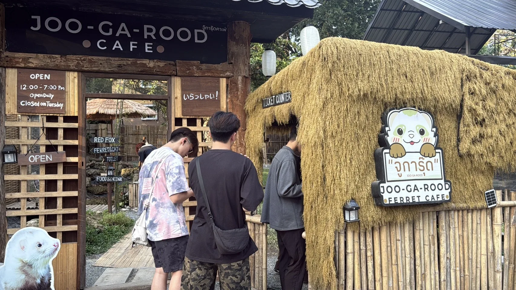 สำหรับคาเฟ่แห่งนี้ ตั้งอยู่ที่ต.สุเทพ อ.เมือง จ.เชียงใหม่ ด้านหลัง มหาวิทยาลัยเชียงใหม่ ตรงข้าม The Baristro Asian Style เข้าเล่นโซนเดียว (เฟอเรท หรือ จิ้งจอก) 169 บาท ถ้าอยากเข้าทั้ง 2 โซน ราคา 269 บาท โดยจะกำหนดให้มีเวลาเล่นได้ 1 ชม. และเปิดให้บริการตั้งแต่เวลา 12:00 น. ถึง 19.00 น. (หยุดทุกวันอังคาร)