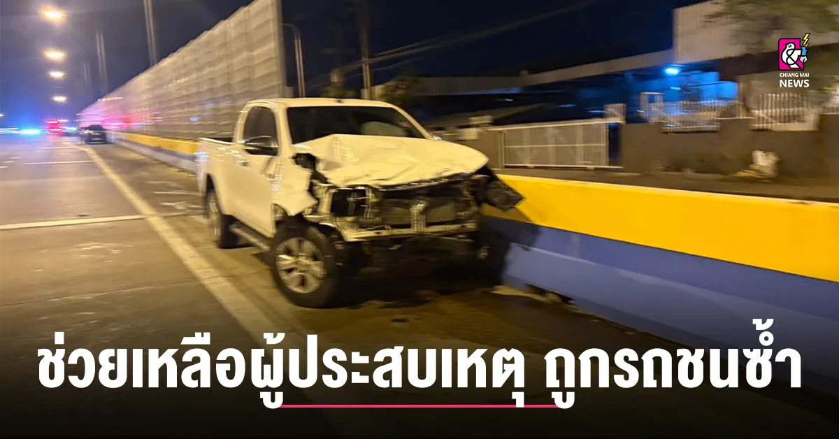 คืบหน้าจากกรณี เวลา 03.45 น. วันที่ 14 ธันวาคม 2568 ทางรถตรวจการณ์กู้ภัยเฉพาะกิจ 810 เข้าตรวจสอบอุบัติเหตุรุนแรง บนทางต่างระดับข้ามทางรถไฟเชียงแสน ถนนวงแหวนรอบที่ 2 พื้นที่ อ.สารภีจ.เชียงใหม่ ในที่เกิดเหตุพบรถยนต์เก๋งเสียหลักชนขอบสะพาน ก่อนถูกรถกระบะที่ตามมาชนซ้ำซ้อนอีก 2 คัน บริเวณกลางสะพานข้ามทางรถไฟ บ้านเชียงแสน ส่งผลให้มีผู้โดยสาร กระเด็นตกจากสะพานสูงประมาณ 6 เมตร ได้รับบาดเจ็บ 2 ราย (อาการสาหัส) และมีผู้บาดเจ็บภายในพื้นที่ที่เกิดเหตุอีก 4ราย แรงชนทำให้ชิ้นส่วนรถกระจัดกระจายเต็มผิวการจราจร