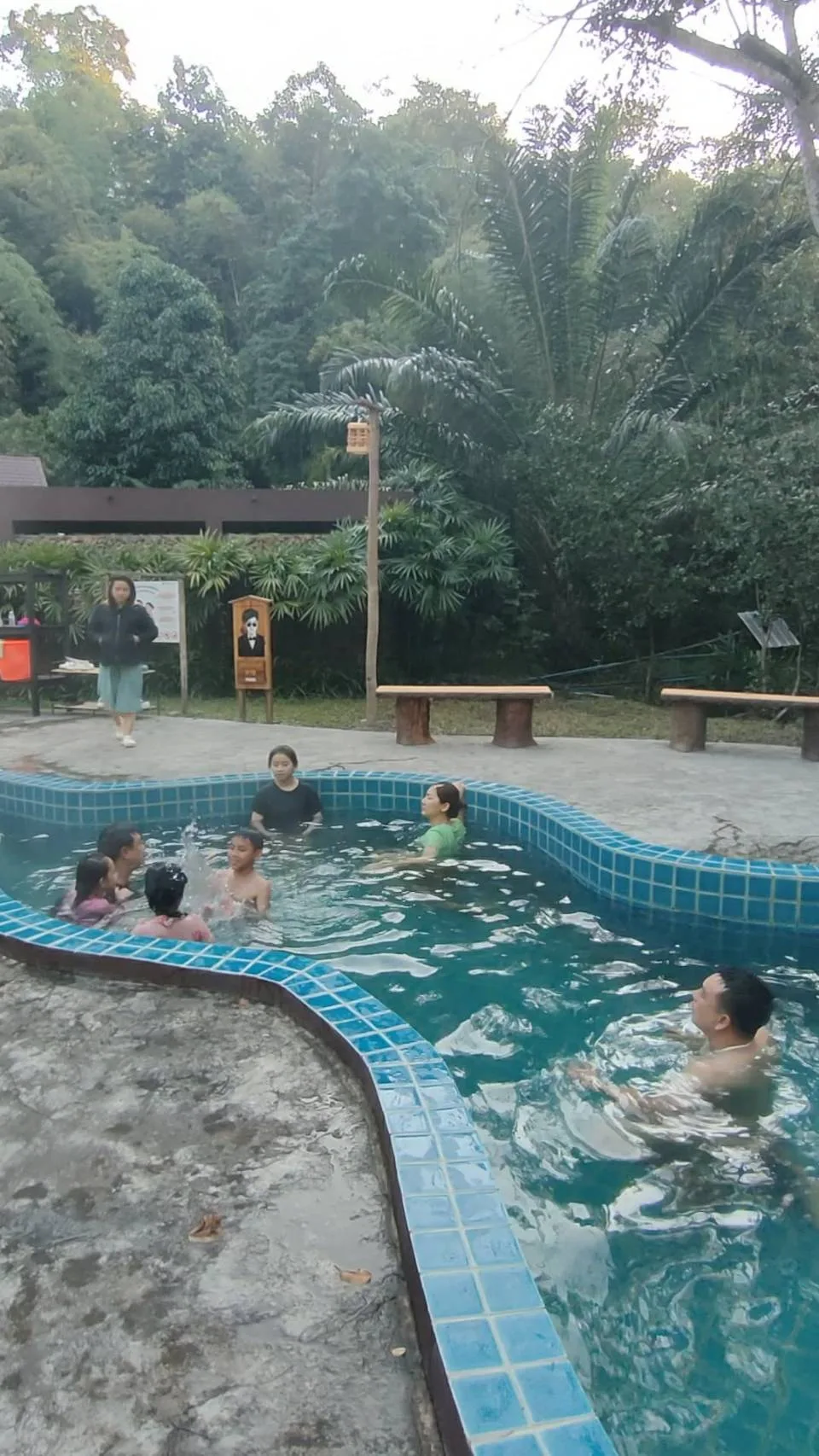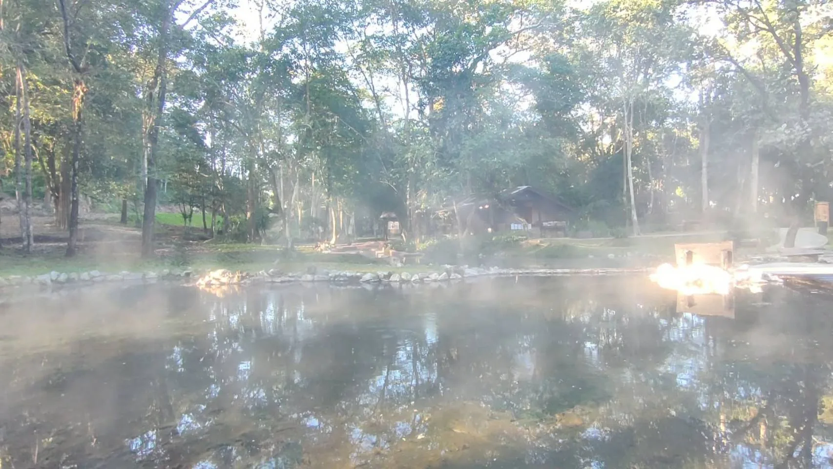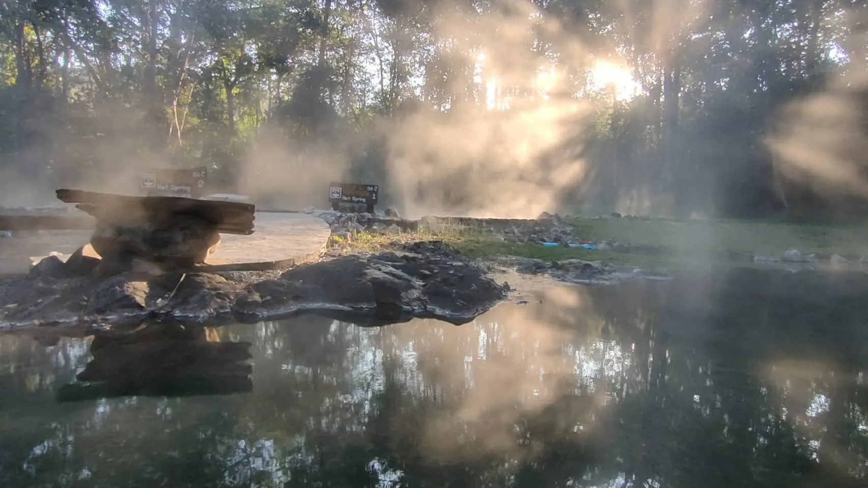 นายประกาศิต ระวิวรรณ หัวหน้าอุทยานแห่งชาติผาแดง เปิดเผยว่า ตรงนี้เป็นแหล่งท่องเที่ยวหนึ่งในอุทยานแห่งชาติผาแดง ชื่อว่าบ่อน้ำร้อนโป่งอ่าง ตรงบ่อน้ำร้อนโป่งอ่างนี้ก็จะมีจุดน้ำแร่ที่ผุดขึ้นมาตามธรรมชาติ 2 บ่อนะครับ ความร้อนประมาณสัก 58 ถึง 64 องศาเซลเซียส ที่นี้เราเปิดให้นักท่องเที่ยวเข้ามาในการแช่น้ำแร่ แล้วก็กางเต็นท์ จุดนี้จุดเด่น ของที่นี่ก็น่าจะเป็นเรื่องของน้ำแร่ธรรมชาติที่ร้อยเปอร์เซ็นต์ ในบ่อแช่ต่างๆเนี่ย เราไม่ได้ผสมน้ำอื่นเข้าไป ก็ถือว่าเป็นน้ำแรกเพียวๆ ซึ่งอุณหภูมิจะพอดีกับการแช่ตัวก็คือประมาณสัก 40 องศาเซลเซียส พอดี ทำให้การแช่เนี่ยเกิดการผ่อนคลาย แล้วก็อีกเรื่องนึงคือกลิ่นของกำมะถัน ที่บ่อน้ำร้อนโป่งอางเนี่ยก็มีกลิ่นอ่อนๆแทบจะไม่ได้กลิ่นเลยนะครับ ก็เป็นจุดเด่นนึงที่ทำให้นักท่องเที่ยวต่างๆที่มาเนี่ยประทับใจ