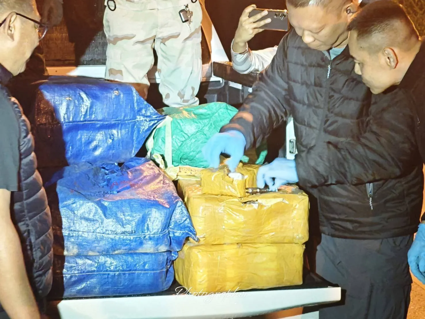 ต่อมาเมื่อเวลา 23.00 นาฬิกา กองกำลังผาเมือง โดย กองบังคับการผาแด่น หน่วยเฉพาะกิจทัพเจ้าตาก ร่วมกับ พันตำรวจเอก รัฐกร อินทนิล ผู้กำกับการตำรวจตระเวนชายแดนที่ 32, สถานีตำรวจภูธรแม่จัน, กองร้อยตำรวจตระเวนชายแดนที่ 327 กองร้อยทหารพรานที่ 3106 ร่วมเข้าตรวจสอบพื้นที่เกิดเหตุ ตรวจพบของกลาง ยาเสพติดให้โทษประเภท 1 (ยาบ้า) จำนวน 13 กระสอบ อยู่ในรถยนต์ Isuzu D-max สีขาว ทะเบียน ชร. รวมประมาณ 1,600,000 เม็ด และเมื่อเวลา 23.30 นาฬิกา