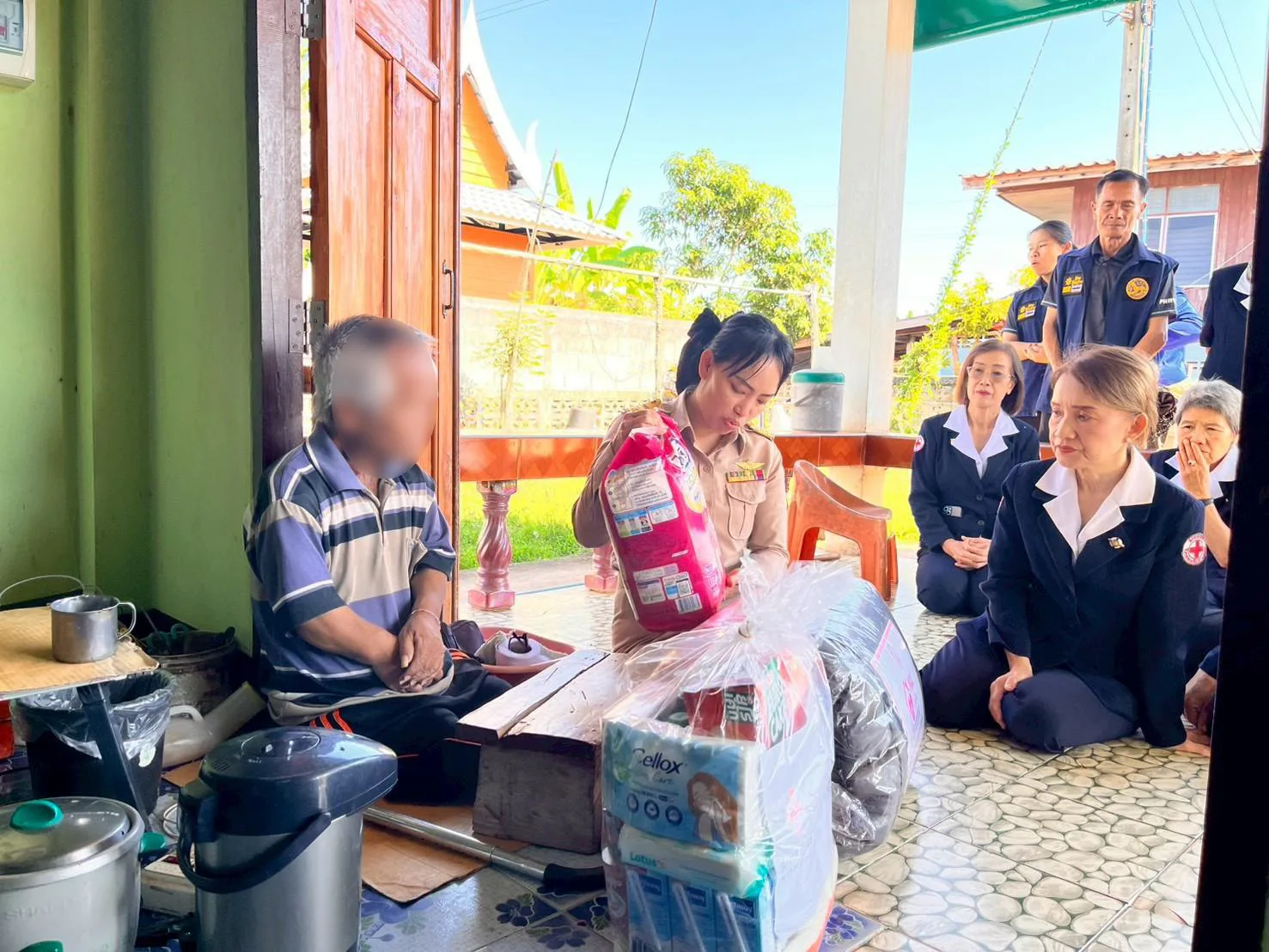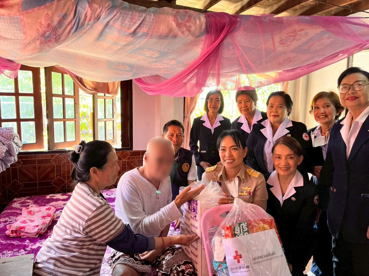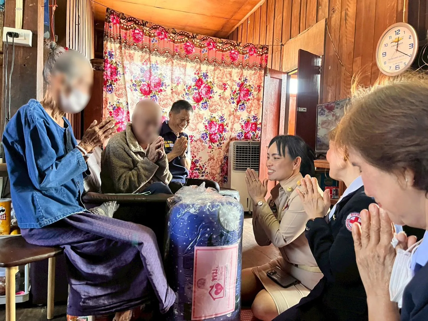นอภ.เชียงคำ ป้ายแดงพร้อมทีมกาชาด เดินหน้าเยี่ยมผู้สูงอายุ หวังลดช่องว่างระหว่างชาวบ้านกับภาครัฐ เผยช่วงนี้หน้าหนาวเป็นห่วงผู้สูงอายุหลายราย