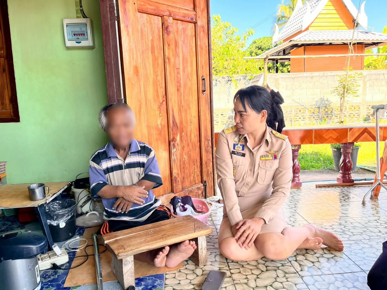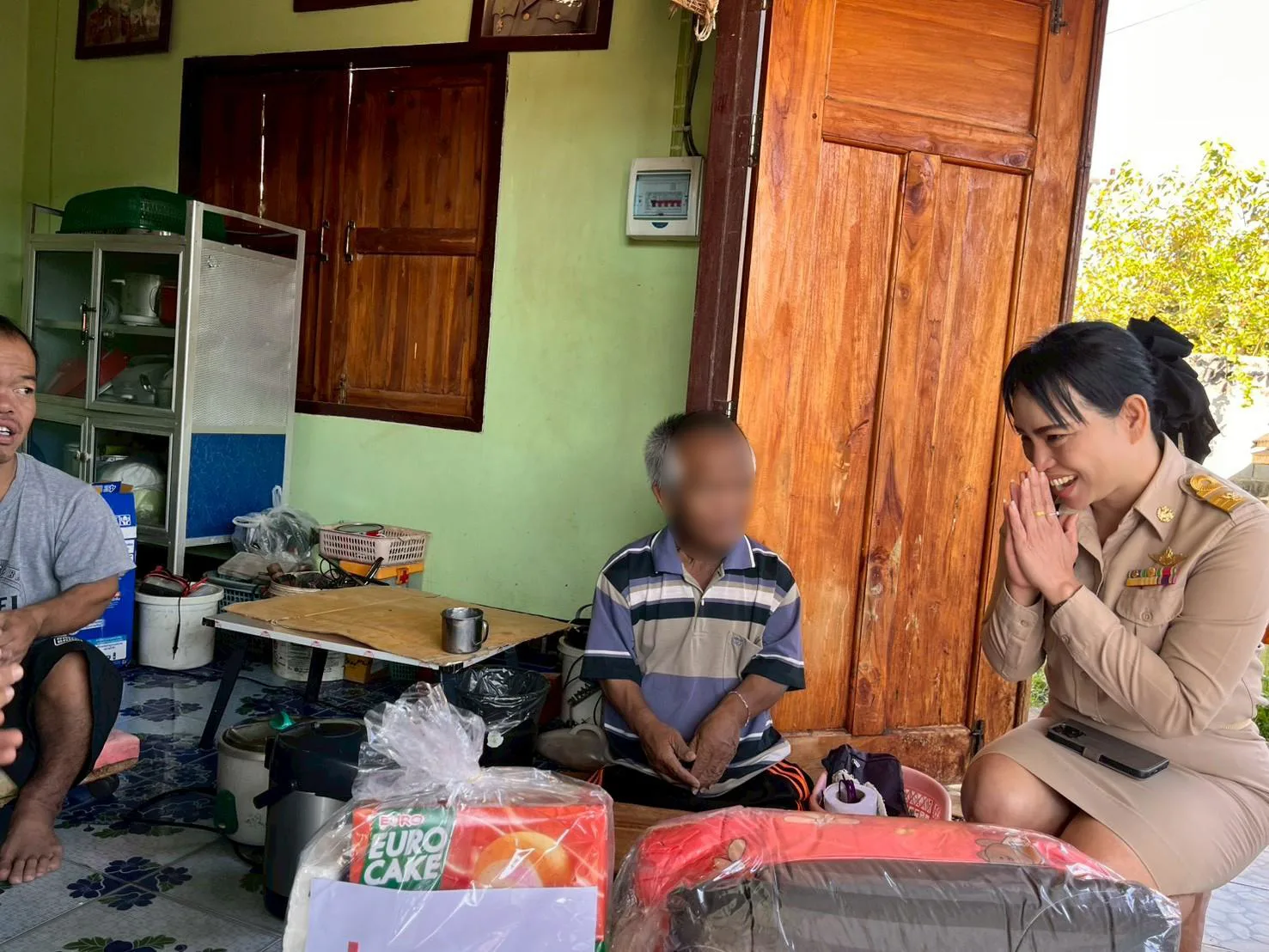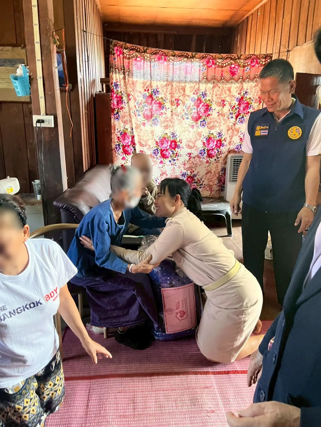 นอภ.เชียงคำ ป้ายแดงพร้อมทีมกาชาด เดินหน้าเยี่ยมผู้สูงอายุ หวังลดช่องว่างระหว่างชาวบ้านกับภาครัฐ เผยช่วงนี้หน้าหนาวเป็นห่วงผู้สูงอายุหลายราย