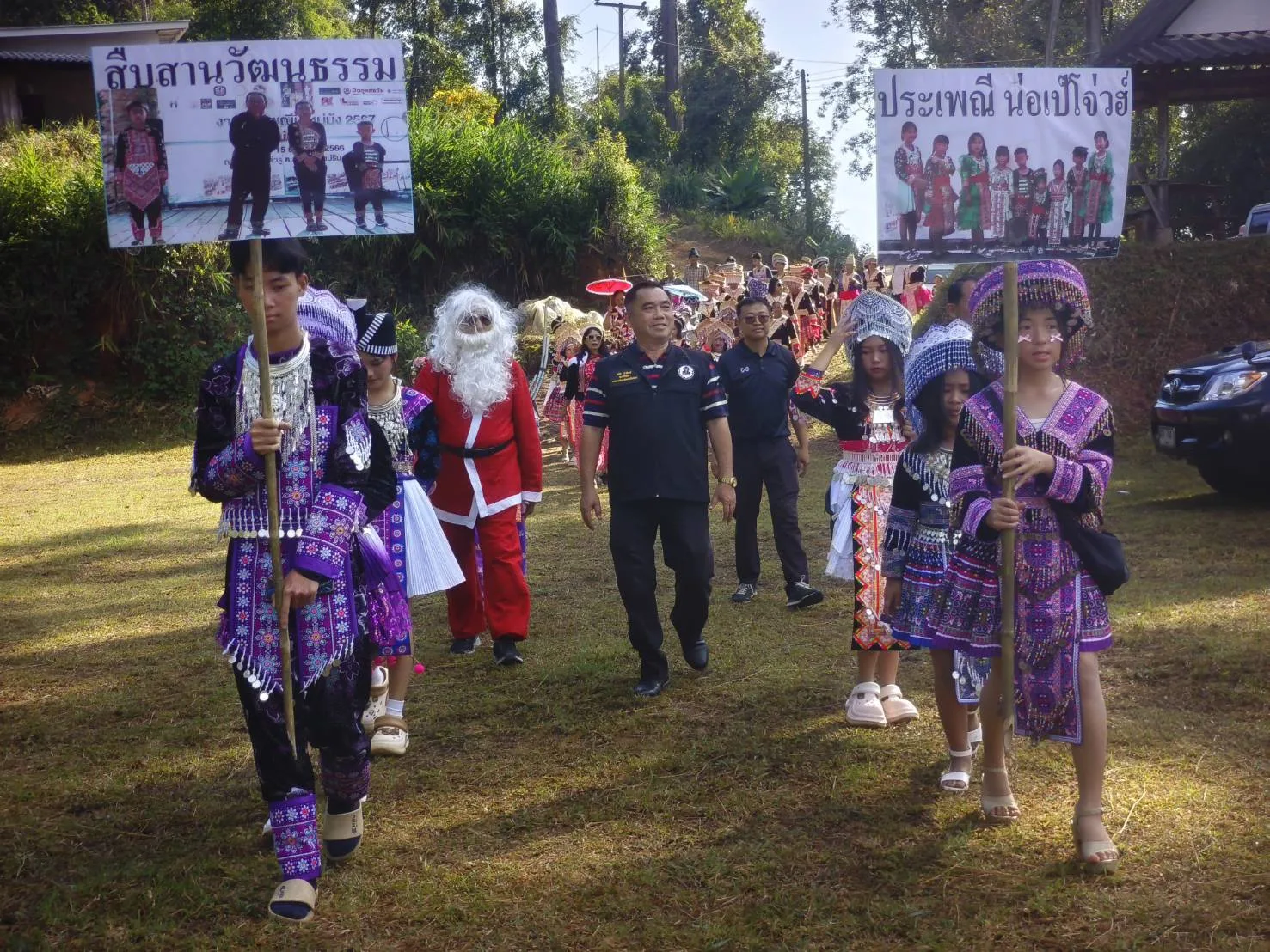 นายวัชระ เทพกัน นายอำเภอแม่ริม เป็นประธานเปิดงานประเพณีปีใหม่ม้ง บ้านห้วยเต่ารู ม.8 ต.สะลวง อ.แม่ริม จ.เชียงใหม่ ก่อนพิธีเปิดได้มีขบวนพาเหรดชุดประจำเผ่าที่สวยงามจากลานหมู่บ้านมายังลานจัดกิจกรรม ขบวนของนักศึกษาในโครงการค่ายอาสาพัฒนาจุฬา-ชนบท ครั้งที่33 เข้าร่วม ทั้งนี้ทางหมู่บ้านได้จัดชุดการแสดงชนเผ่าจาก ร.ร.บ้านเมืองก๊ะ ศูนย์พัฒนาเด็กเล็ก กลุ่มสตรีแม่บ้านร่วมแสดงวัฒนธรรมของชนเผ่าม้งต้อนรับผู้มาร่วมงาน พร้อมกันนี้ยังมีการมอบผ้าห่มกันหนาวจากบริษัทไทยเบฟ และมิสเตอร์เบอร์หนาด โอลลิแวง ชาวฝรั่งเศสแต่งชุดซานต้าครอส ร่วมแจกขนมของเล่นให้กับเด็กๆอย่างสนุกสนานเป็นสีสันของเทศกาลคริสต์มาสควบคู่กับปีใหม่ม้งของบ้านห้วยเต่ารูประจำปีนี้ โดยมีนายวิเชียน รัตนบุญเลิศ ผญบ.บ้านห้วยเต่ารูพร้อมคณะกรรมการหมู่บ้าน นายมนัส คำจันทร์ ส.อบจ.แม่ริมเขต1 นายวรวุฒิ บัวเร็ว กำนันตำบลสะลวงนำฝ่ายปกครองตำบลสะลวงเข้าร่วมให้การต้อนรับและยินดีในโอกาสปีใหม่นี้