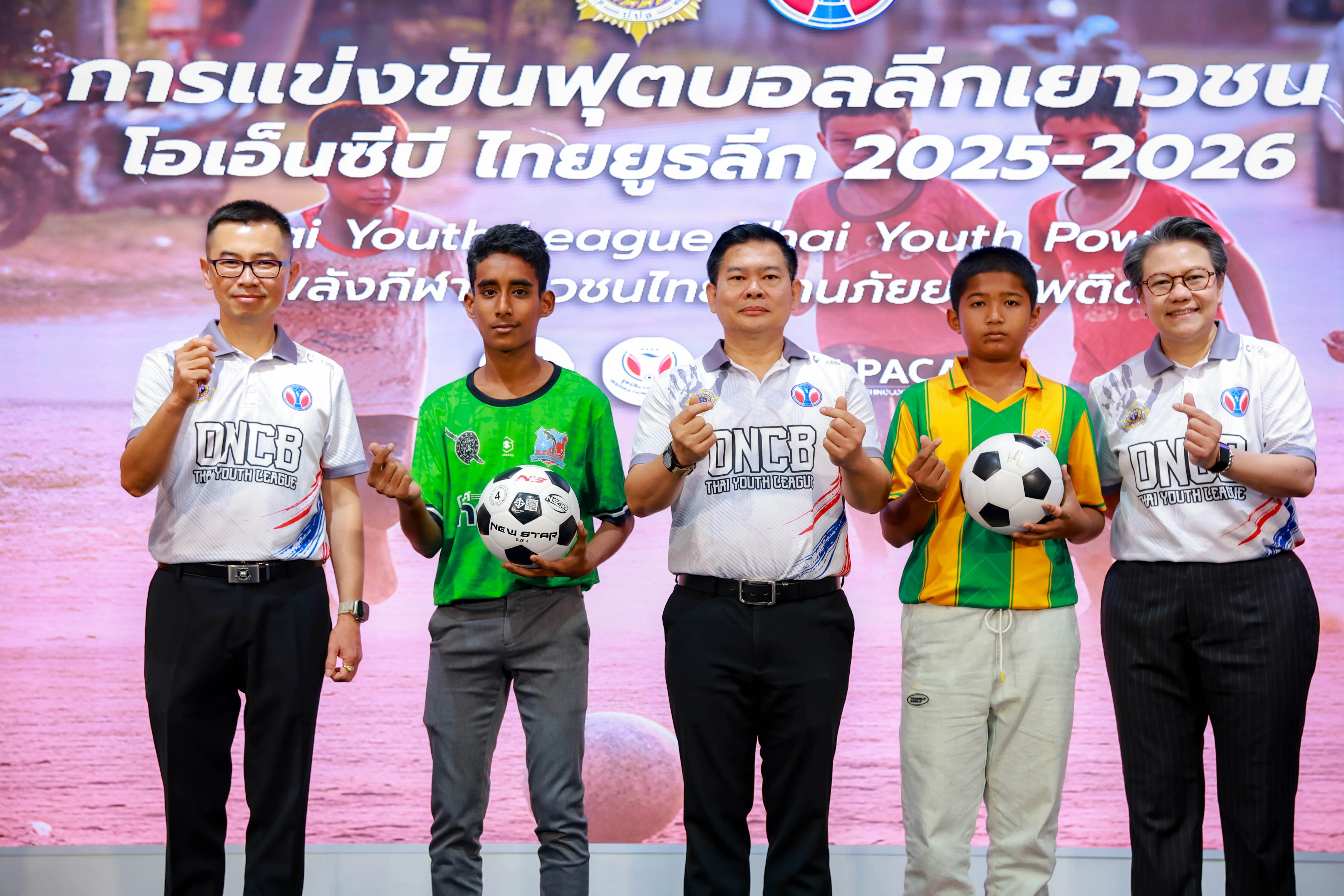 วันที่ 24 ธันวาคม 2568 สำนักงาน ป.ป.ส. ร่วมกับ มูลนิธิมิราเคิล ออฟไลฟ์ เปิดตัวโครงการแข่งขันฟุตบอลลีกเยาวชนระดับประเทศ “โอเอ็นซีบี ไทยยูธลีก 2025 – 2026” (ONCB Thai Youth League 2025 – 2026) มุ่งใช้กีฬาเป็นเกราะป้องกันยาเสพติด สร้างพื้นที่สร้างสรรค์ให้เด็กและเยาวชนทั่วประเทศ อายุ 8-16 ปี ได้แสดงศักยภาพ พร้อมยกระดับสู่การเป็น “พลเมืองคุณภาพ” ของสังคม