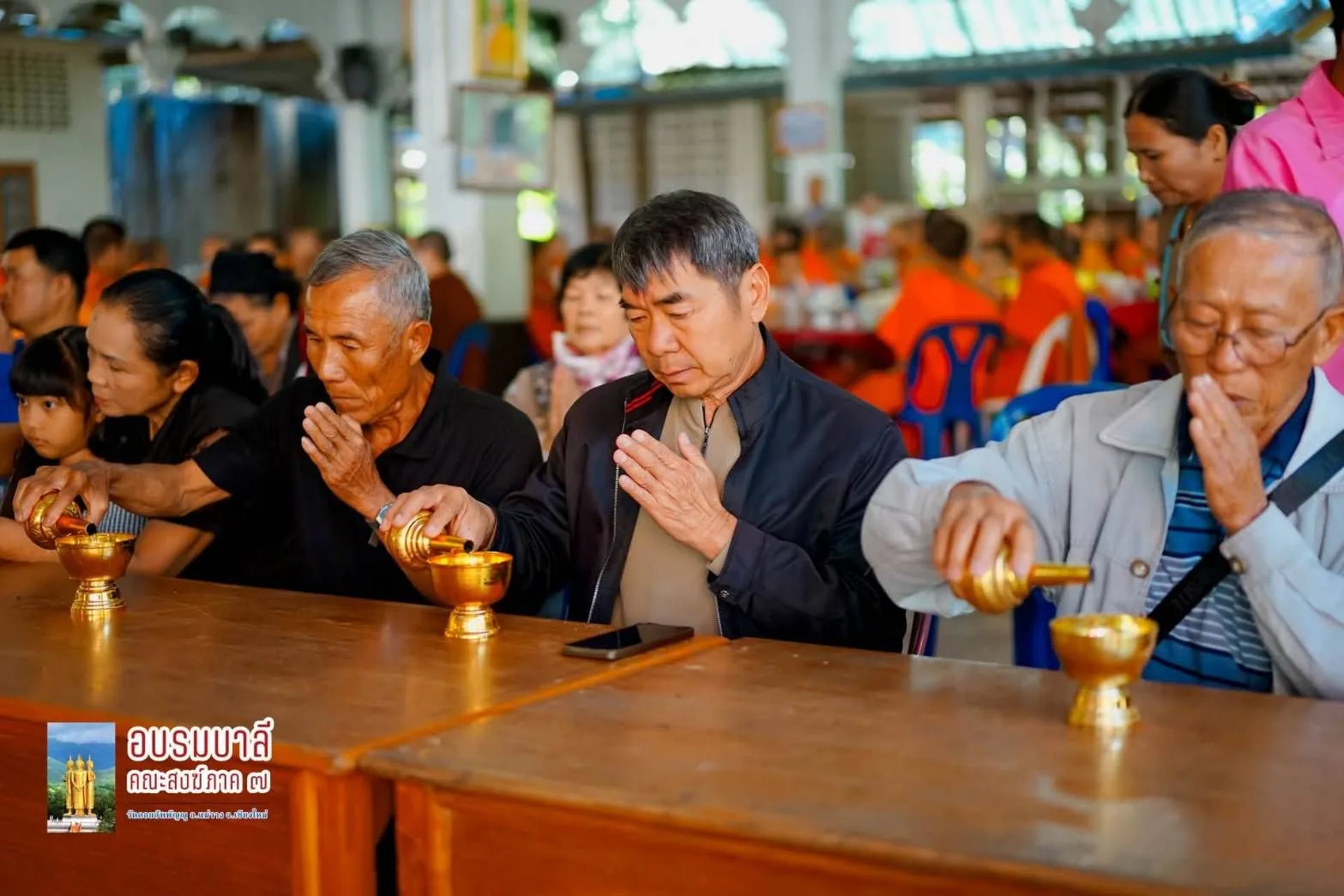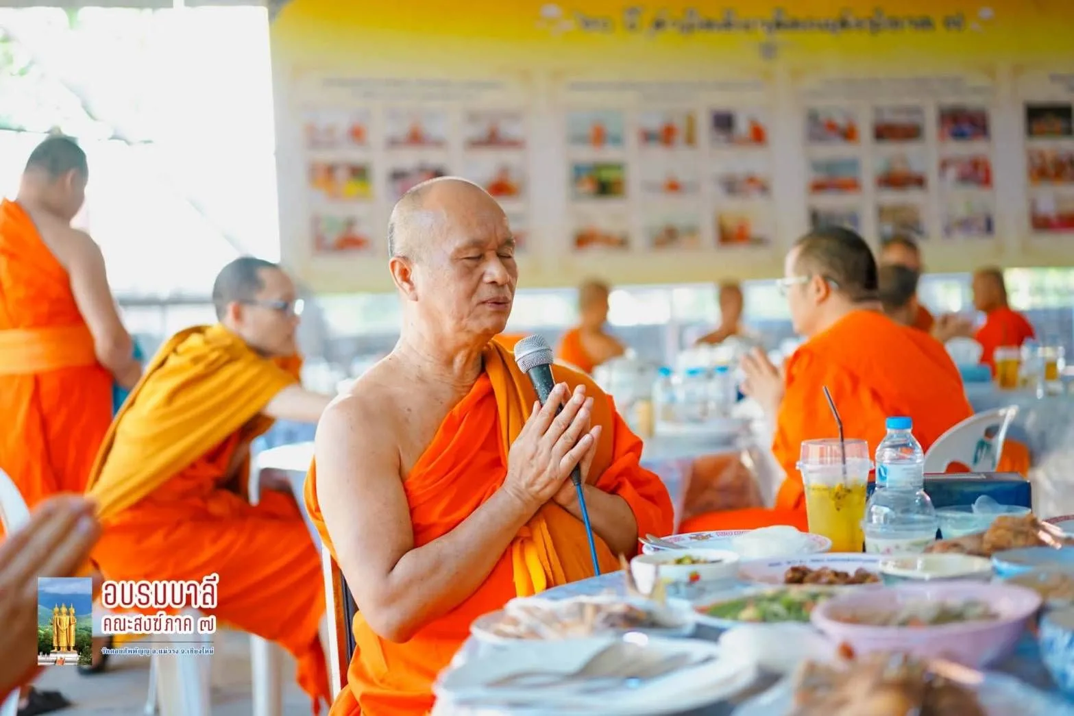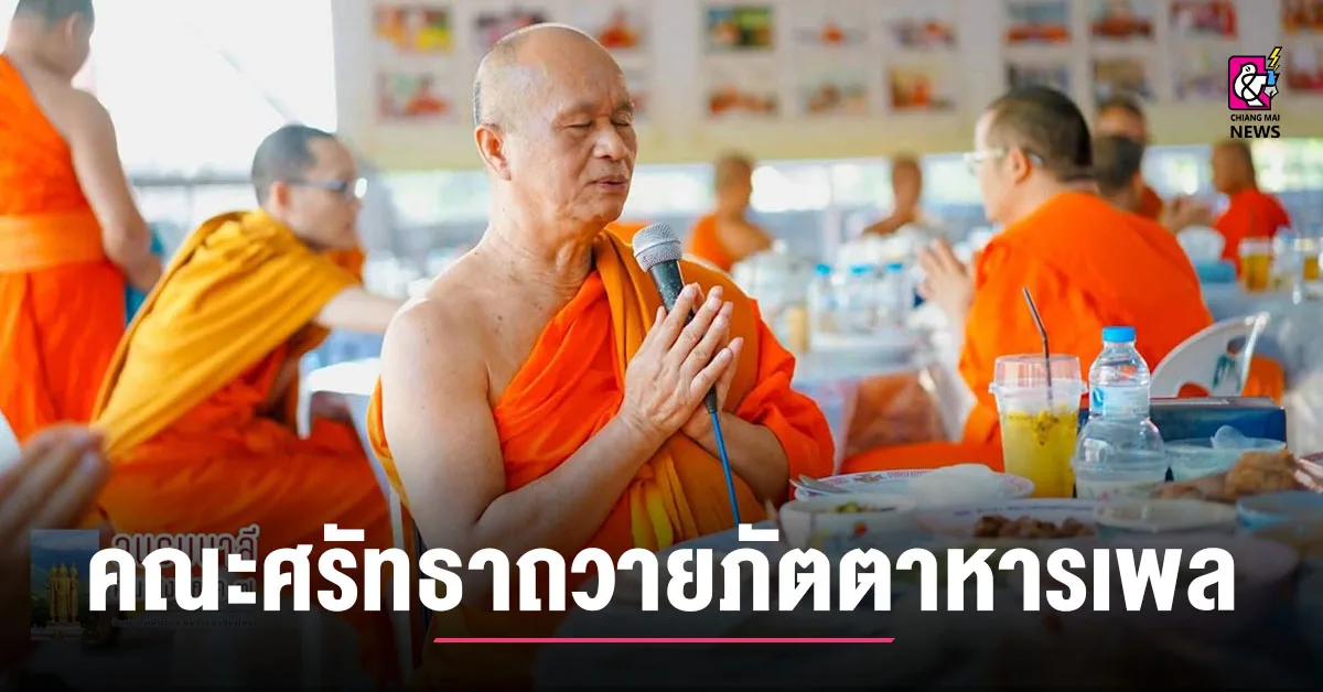 พระราชปัญญาเวที นำคณะศรัทธาถวายภัตตาหารเพลแด่พระภิกษุสามเณรอบรมบาลีก่อนสอบ ณ วัดดอยสัพพัญญู